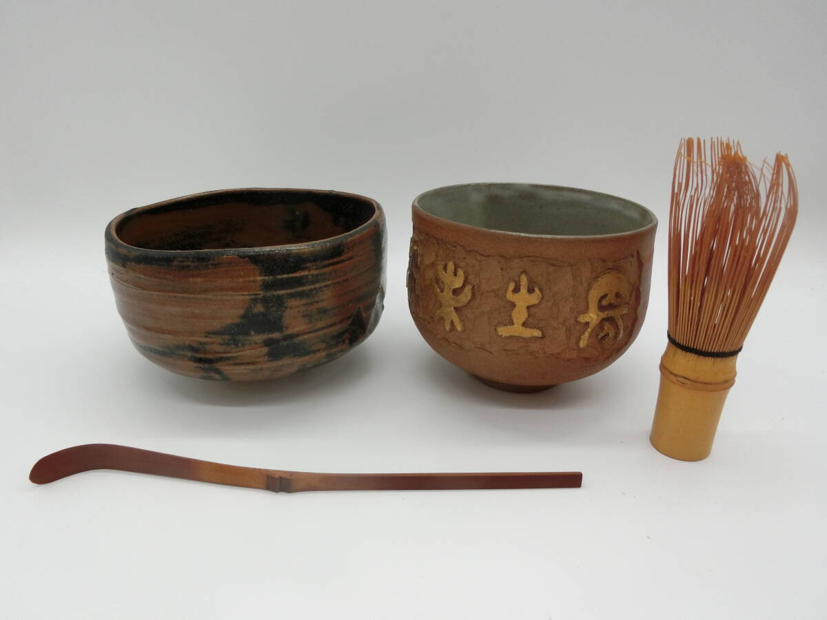 H214◆茶道具 いろいろ4点セット 抹茶碗 茶筅 茶杓 竹製 中村陶房 長生未来 縁起物 煎茶道具