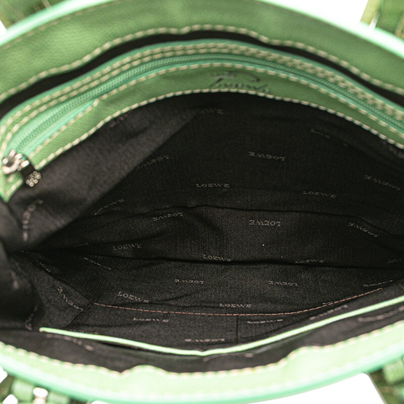 ロエベ リピートアナグラム トートバッグ ハンドバッグ グリーン キャンバス レザー レディース LOEWE 【中古】