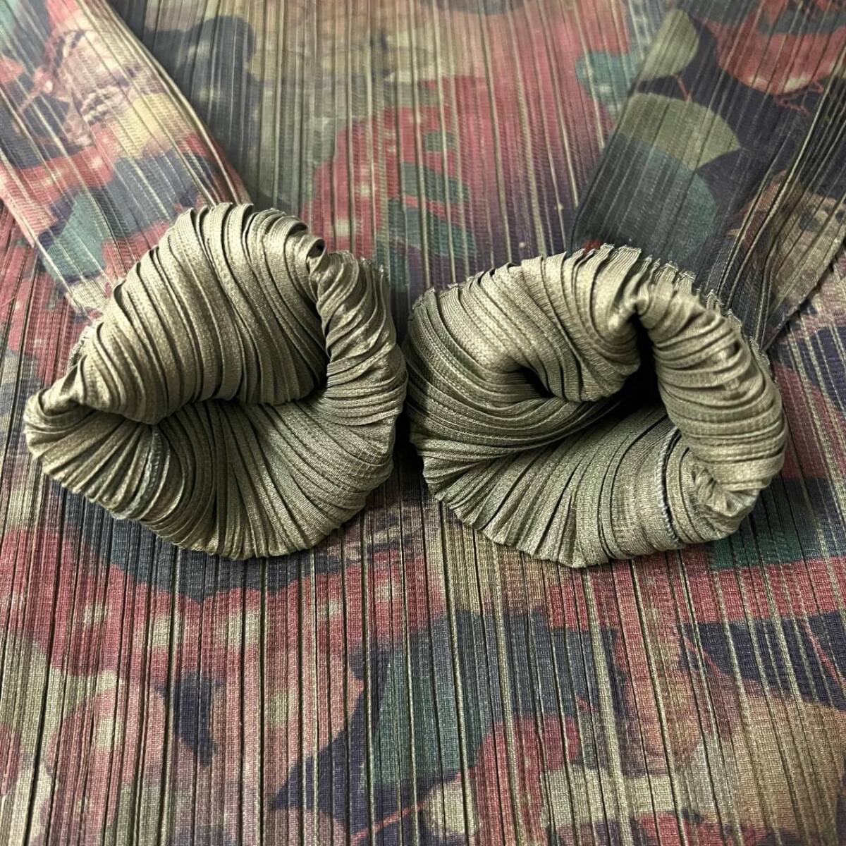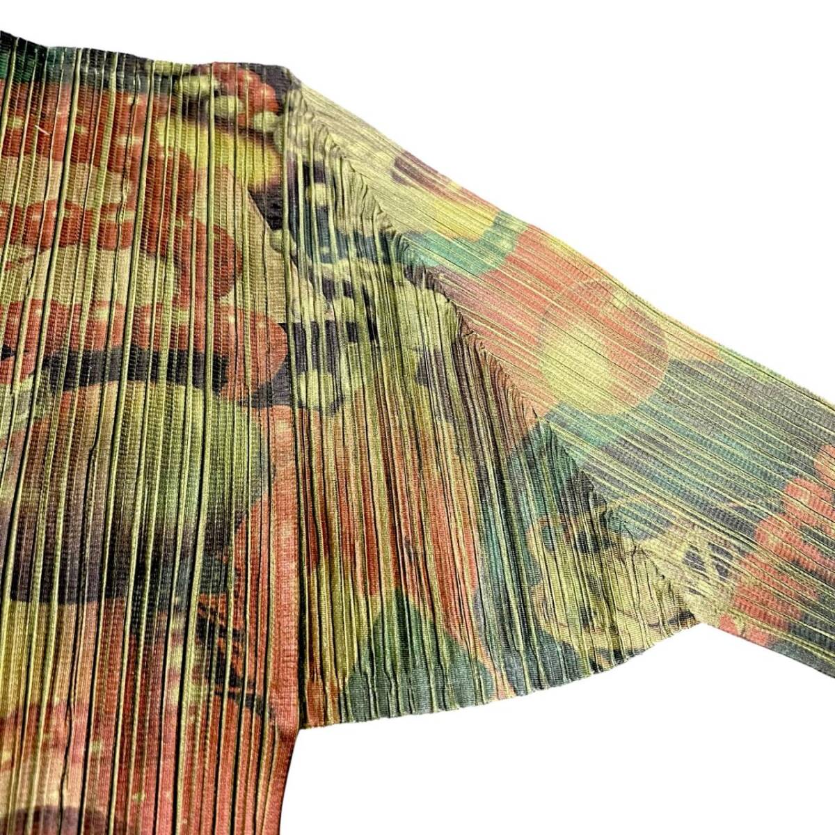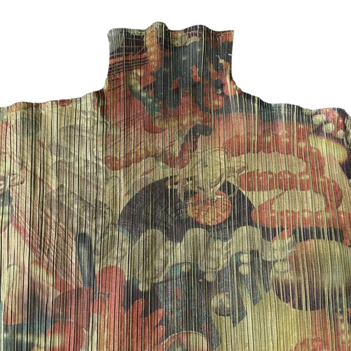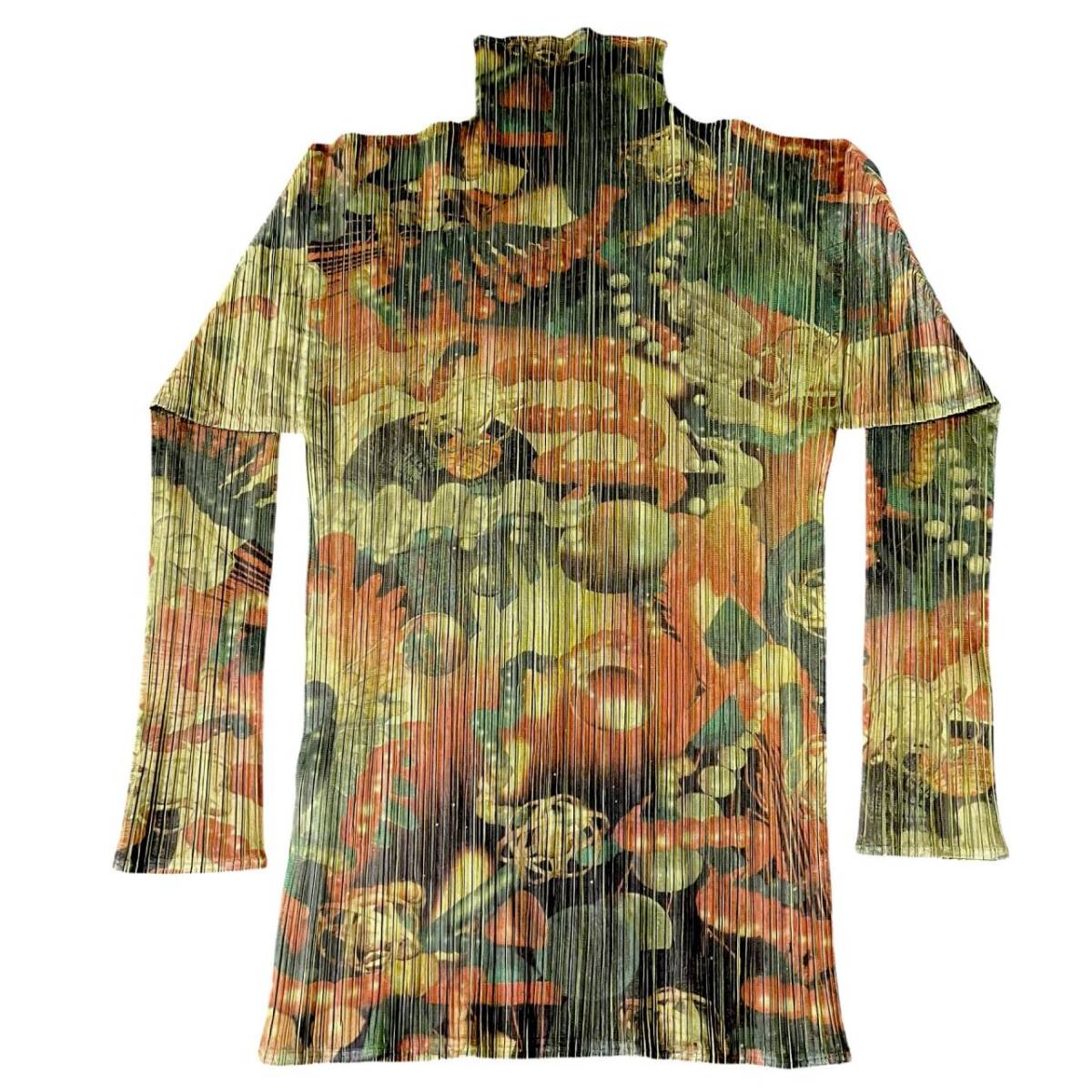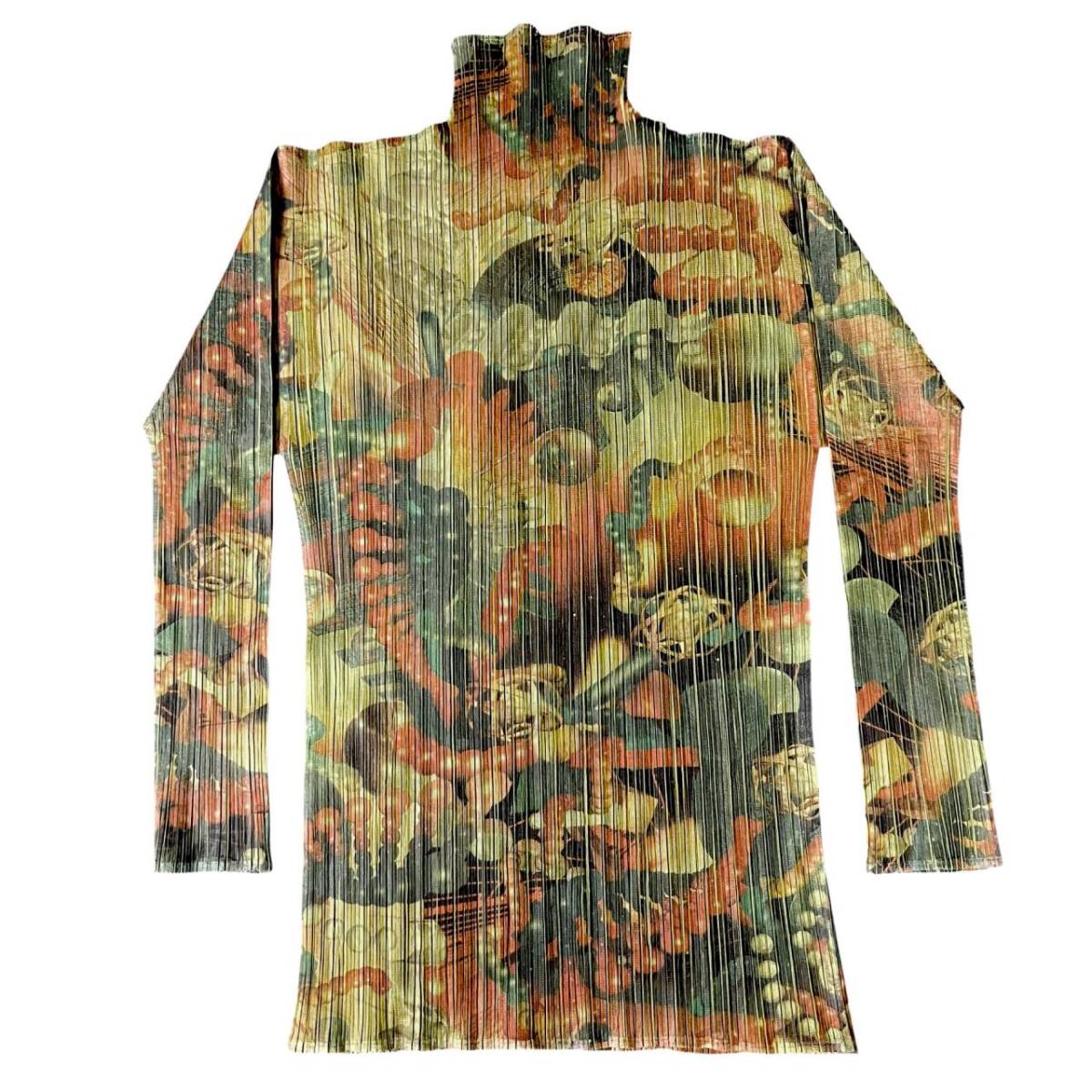 | ISSEY MIYAKE イッセイミヤケ プリーツプリーズ 3D Art DNA Graphics PP62-JK104 グリーン カーキー系 長袖 ハイネック サイズF |