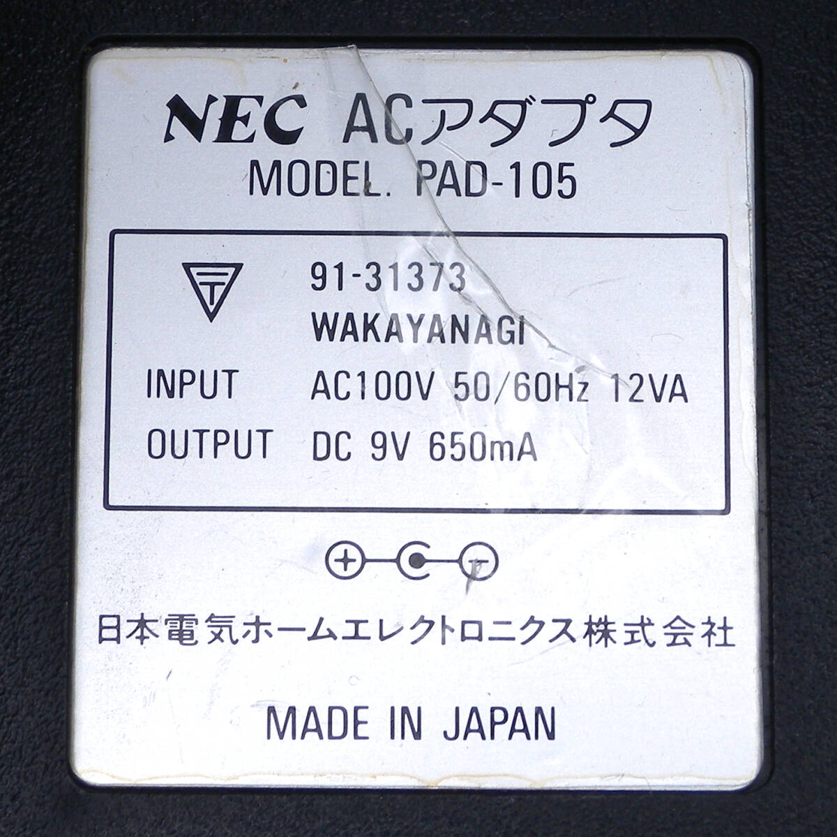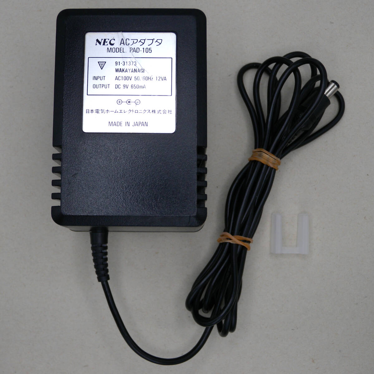 送料無料 NEC 日本電気 PCエンジン コアグラフィックス 等用 ACアダプター PAD-105 センターマイナス 9V 650mA 日本製 MADE IN JAPAN 即決!