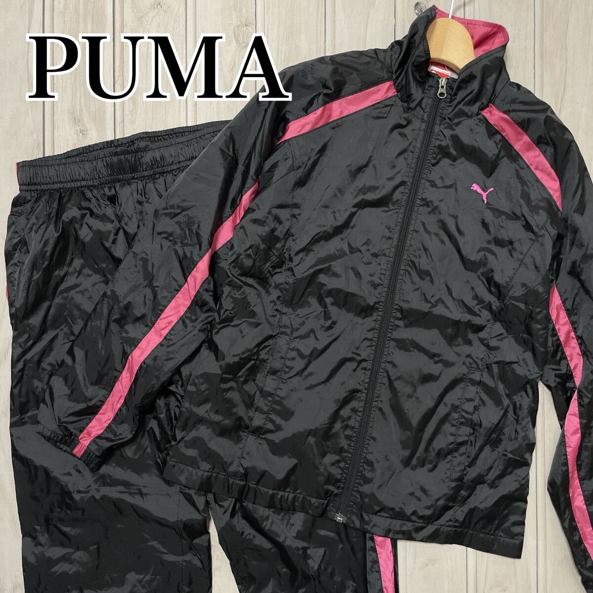 PUMA プーマ 上下セット 長袖 ウィンドブレーカー ジャージ Mサイズ M 黒 ブラック ピンク ライン ウインドブレーカー スポーツ ランニング