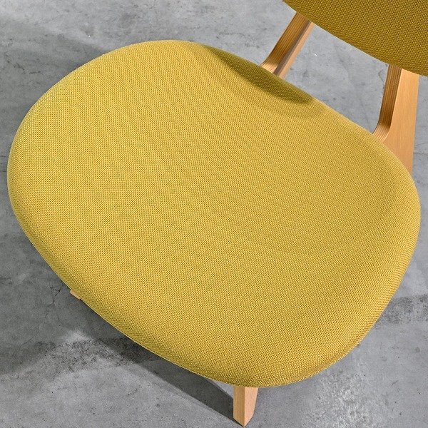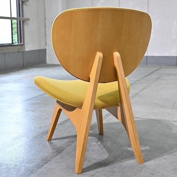 直線的な脚部と、有機的な曲線を描く背と座の意匠上のコントラストが魅力です。