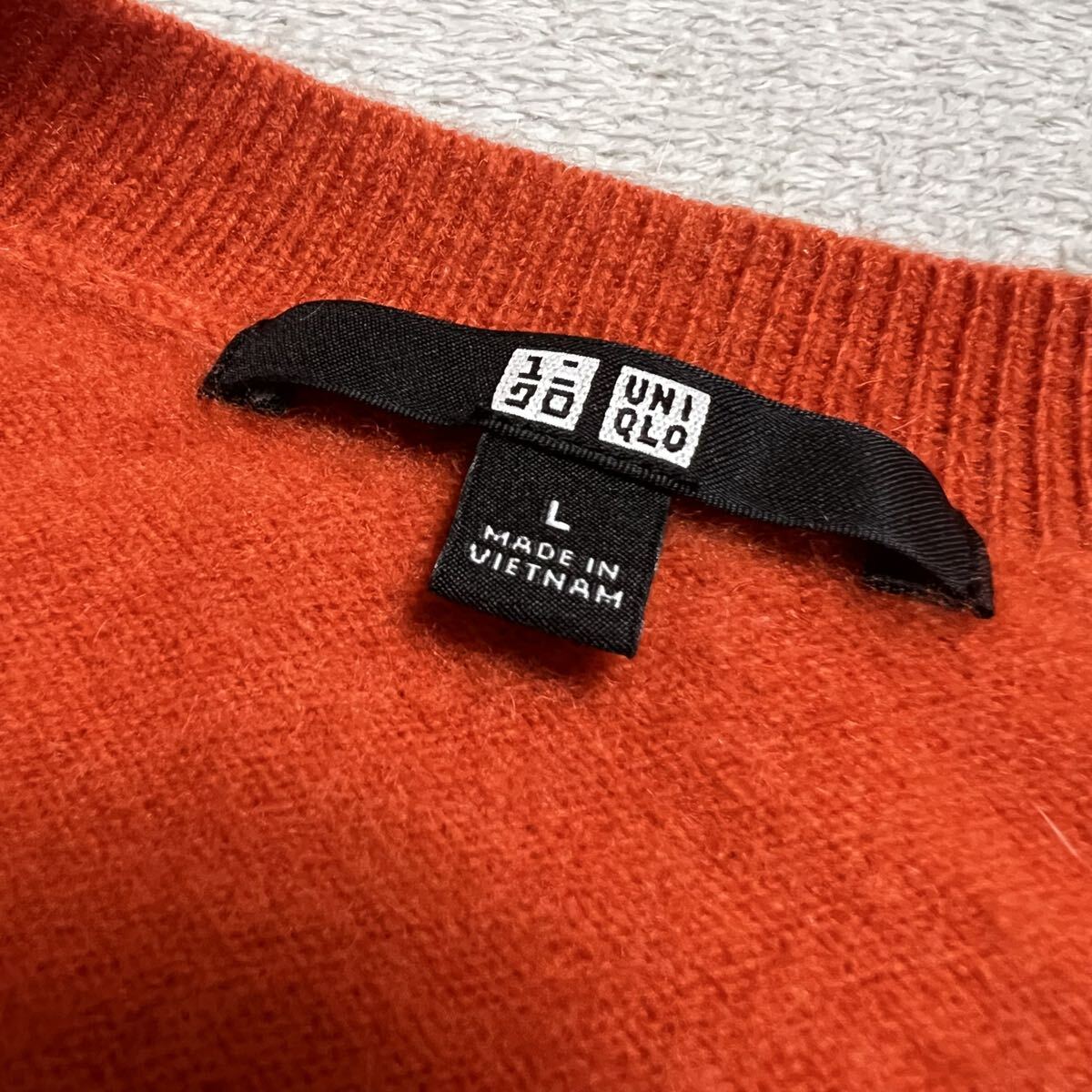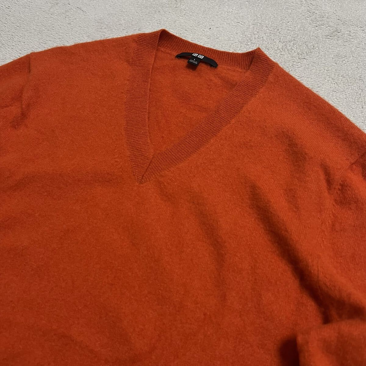 ★送料360円★美品 カシミア100% 高級 UNIQLO 長袖 カシミヤ ニット セーター オレンジ レディース サイズL Vネック R-8098