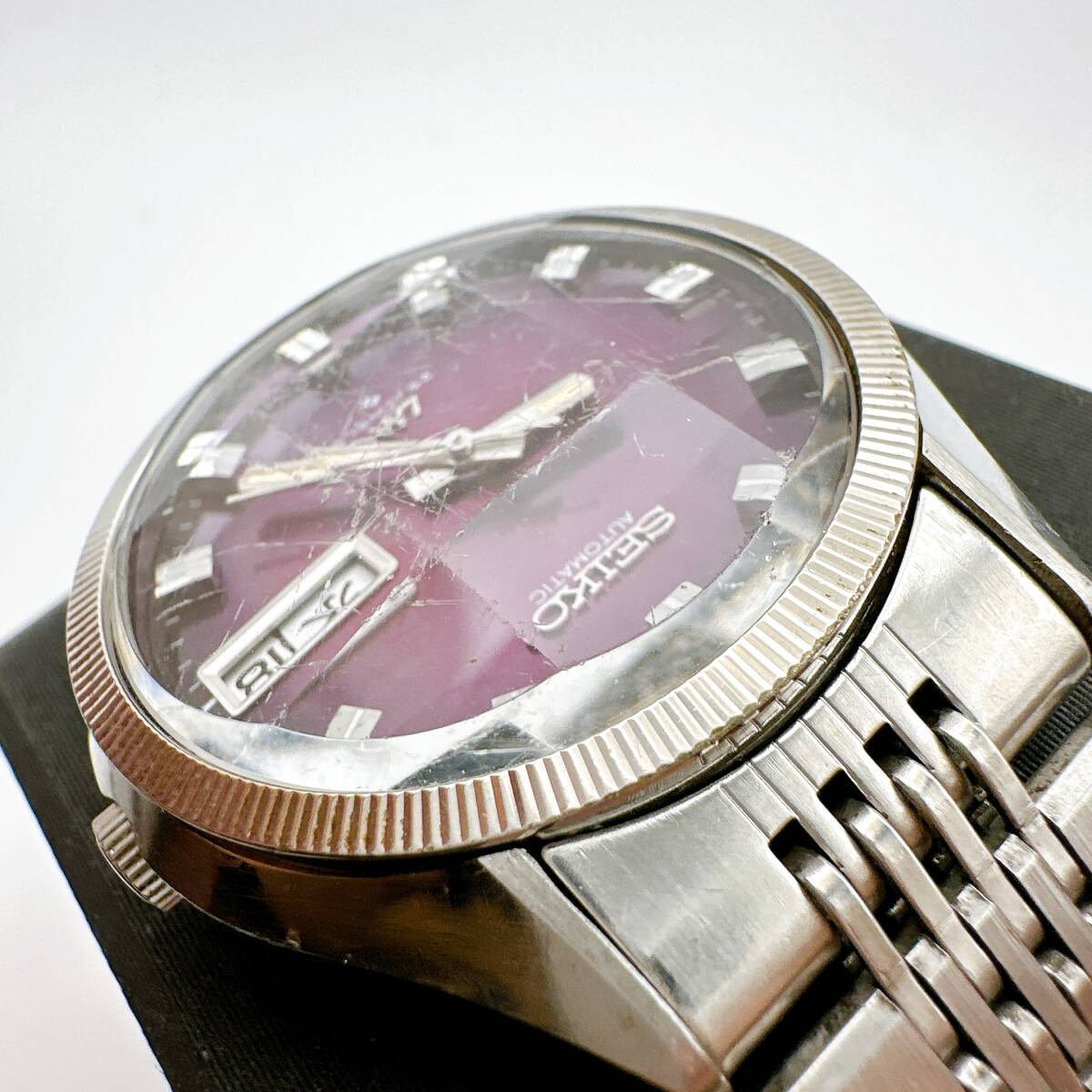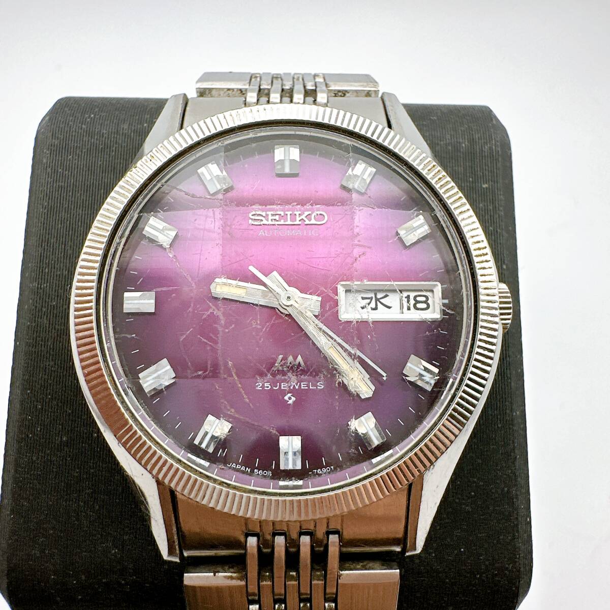 A94-1 1円スタート 稼働品ジャンク SEIKO LM セイコーロードマチック 紫文字盤 カットガラス メンズ腕時計 レア希少品 ビンテージ