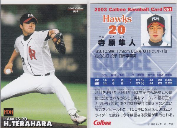 ★2003カルビー【寺原 隼人】 BASEBALL CARD No.061:ホークス R5