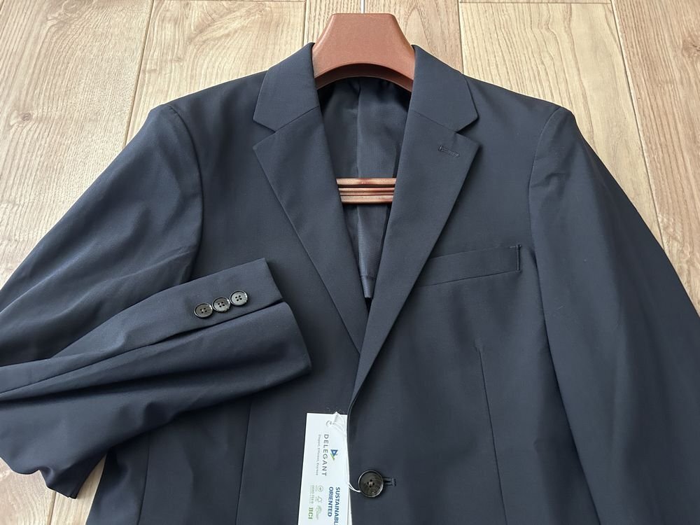ウールのスーツ素材のようなしなやかで、涼しく使える機能がポイントです。