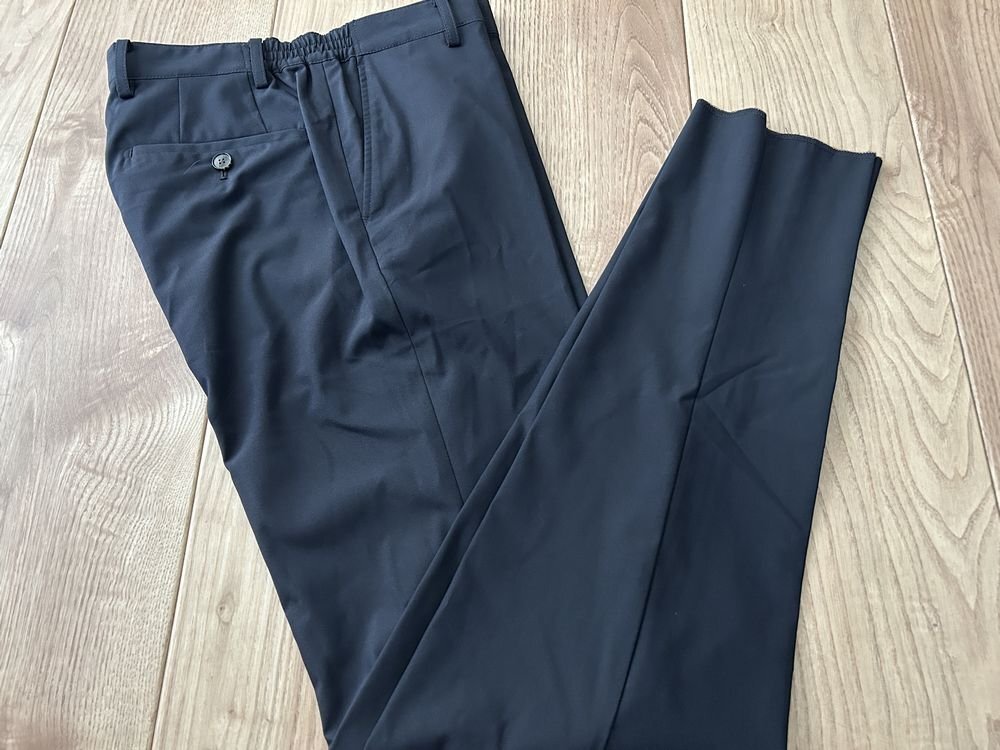 デザインは、綺麗に見える細身のテーパードシルエットで、脇をゴム使用にしたことで、動きやすさをプラスしました。