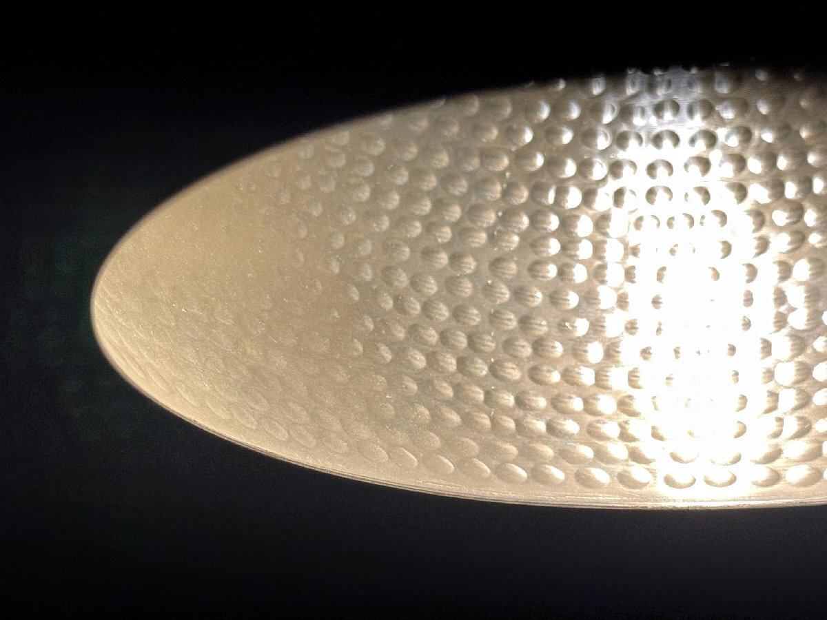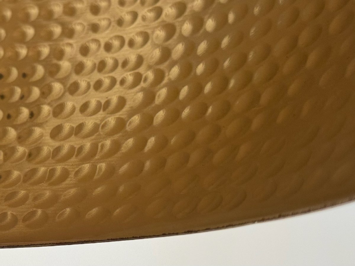 プロダクトを特徴づけるプリミティブなデザインに、シェード下部に映り込んで美しい反射をたたえるイエローゴールドの真鍮材のカラーリングとテクスチャーのシルエットで、インド人職人によるアナログな工程が表現された、現代の時代感覚に清涼に訴えるデザインコンセプトとアプローチも心を打つ逸品です。