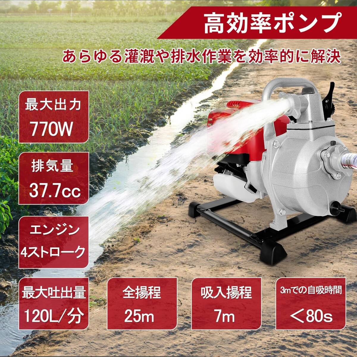 【 高効率と強力な性能】:4サイクルガソリンエンジンポンプは強力な吸引力と25m高い揚程で、遠距離まで水を噴射でき、効率的に灌漑を行うことができます。