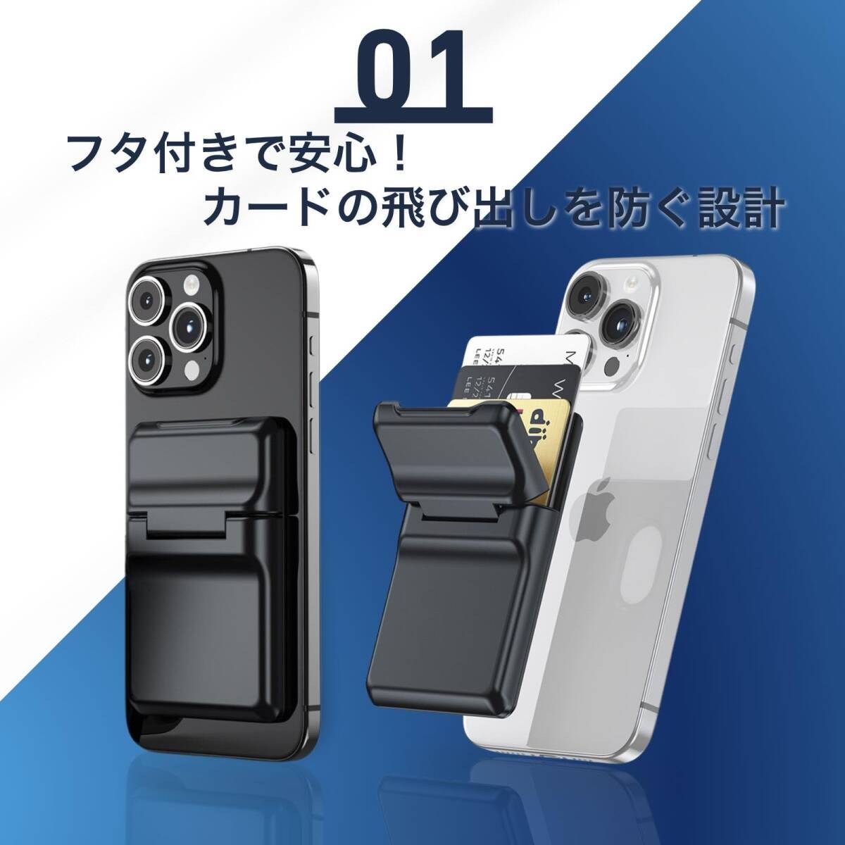 【KIVON】MagSafe対応 カードケース iPhone用 スタンド機能付き フタ付き 薄型マグネット式 スライド開閉 カード