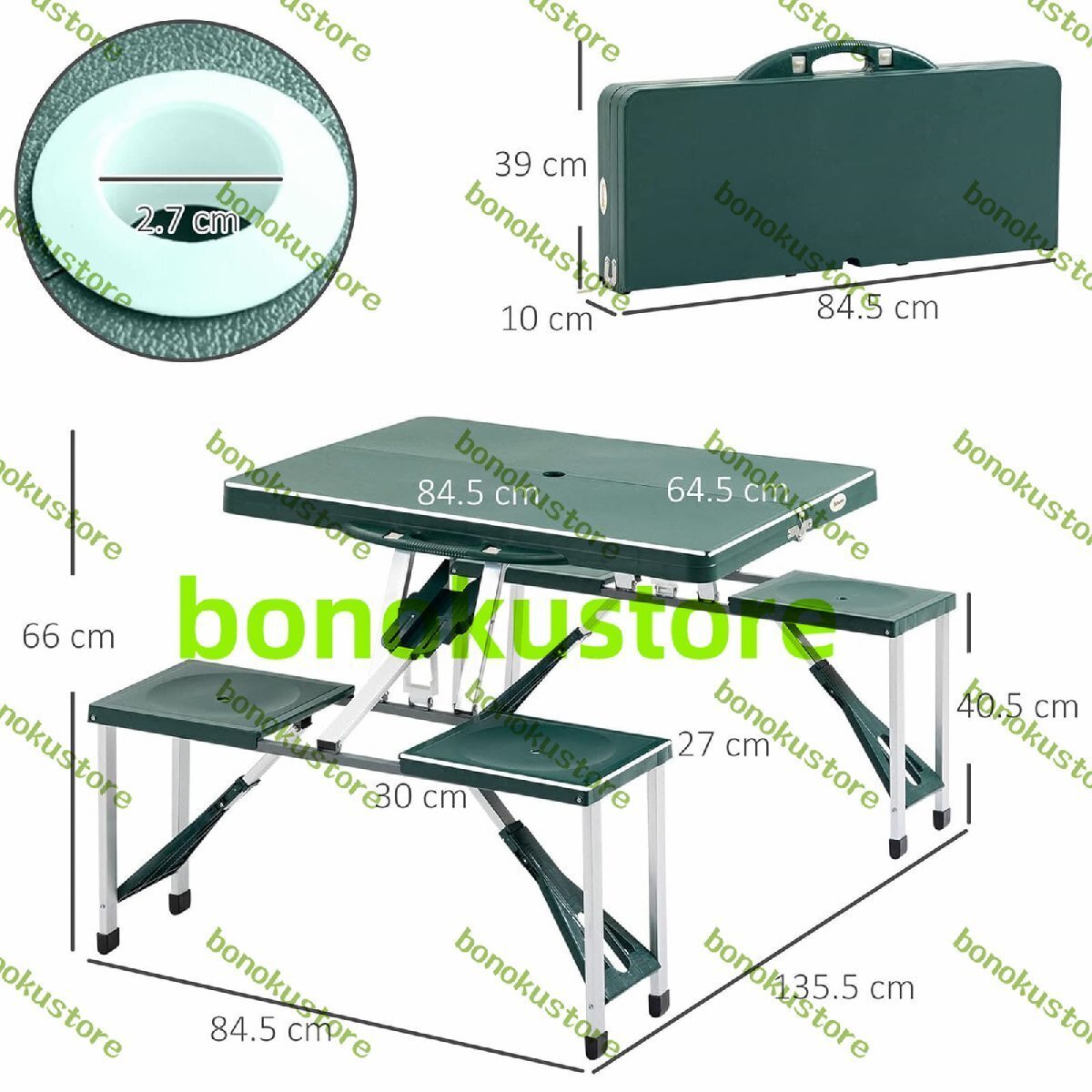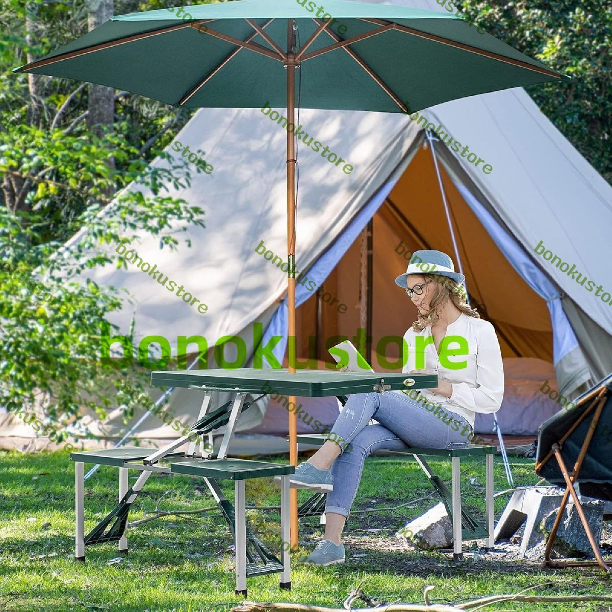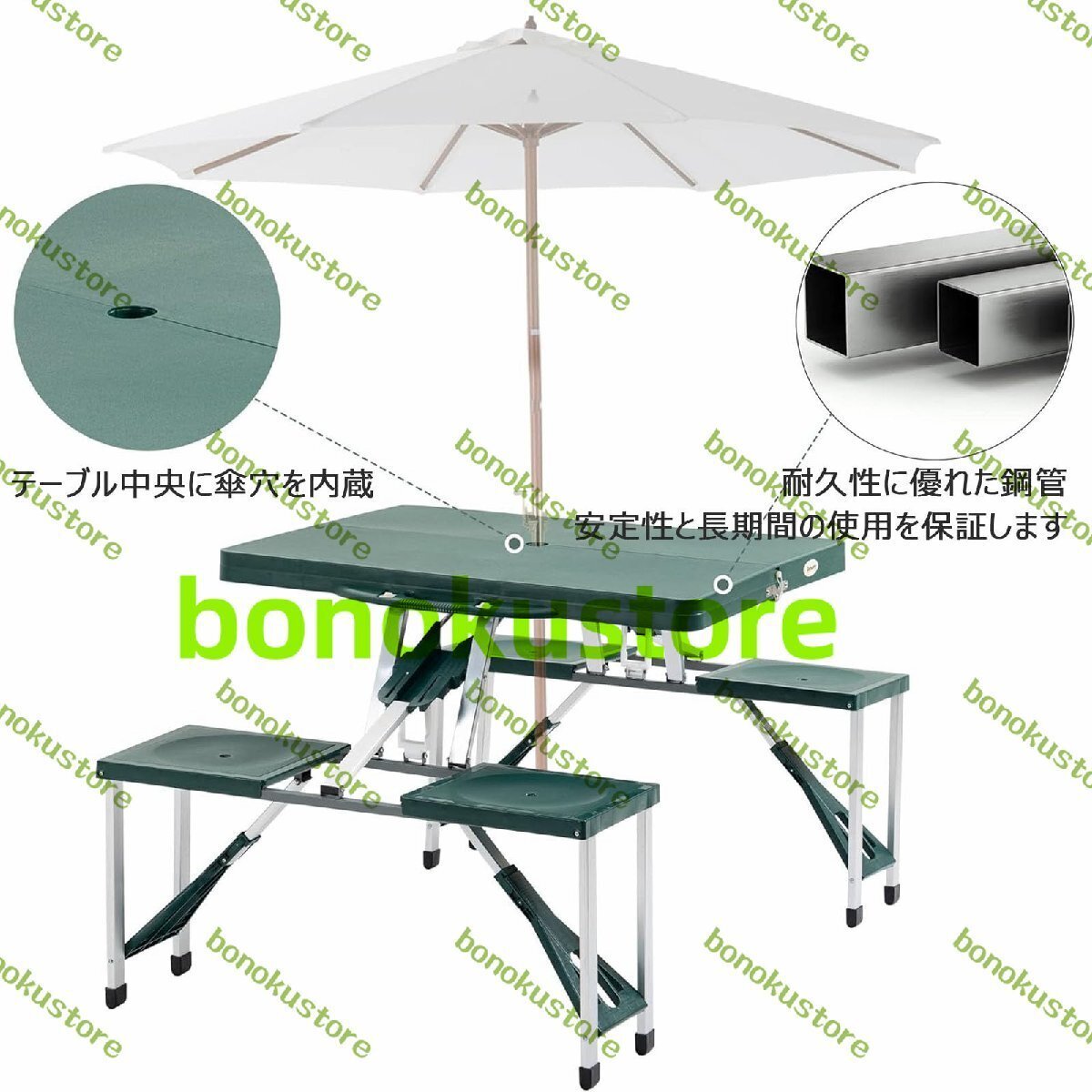 キャンプテーブルセット 折りたたみ 4人掛け アウトドア テーブル・チェア一体型 屋外 テーブルと椅子セット ピクニックテーブル 傘穴付き 軽量 ポータブル 組立簡単 持ち運び便利 BBQ ガーデン 屋外 キャンプ用品 グリーン