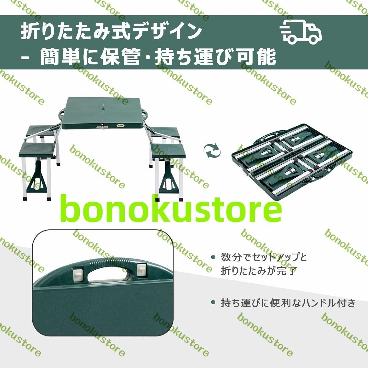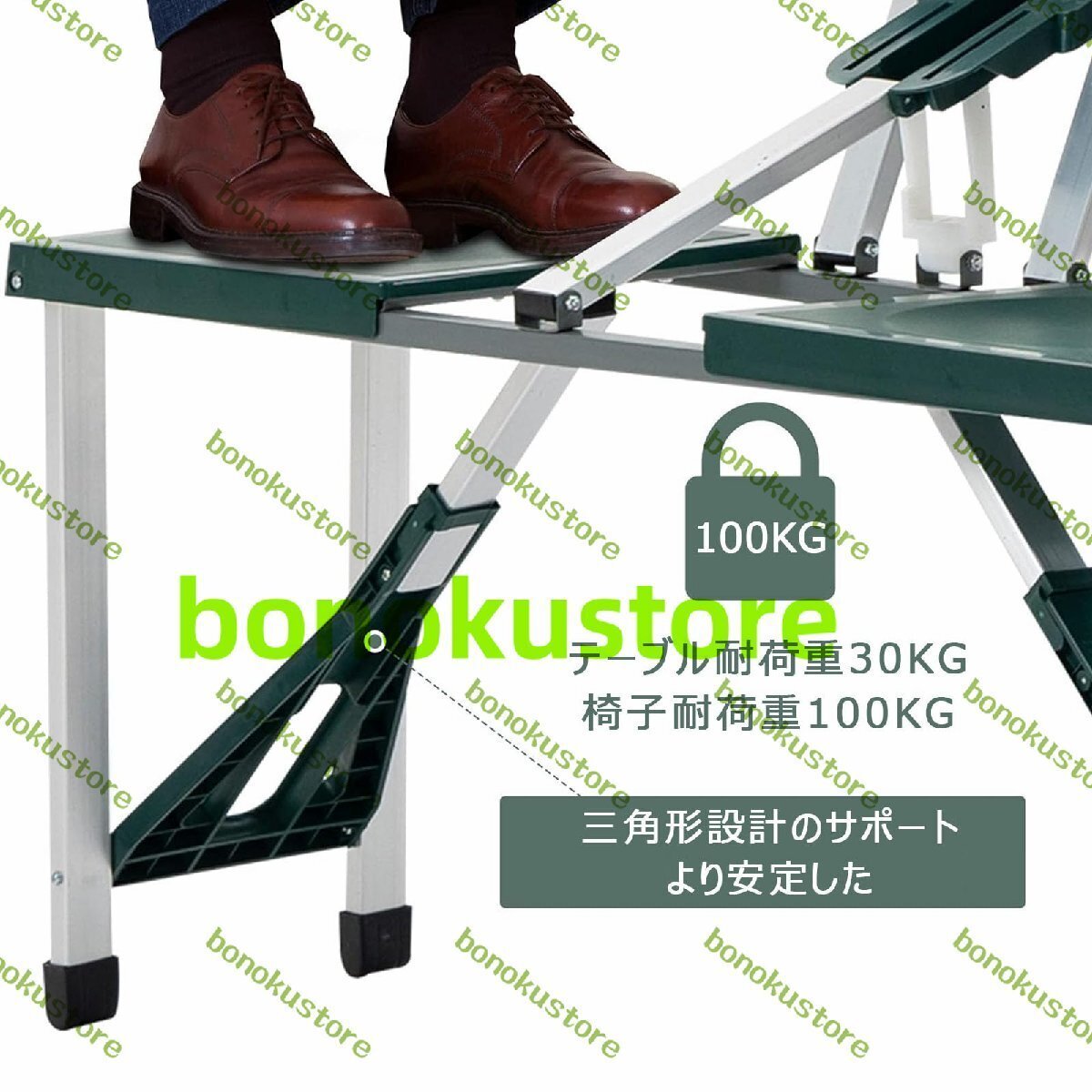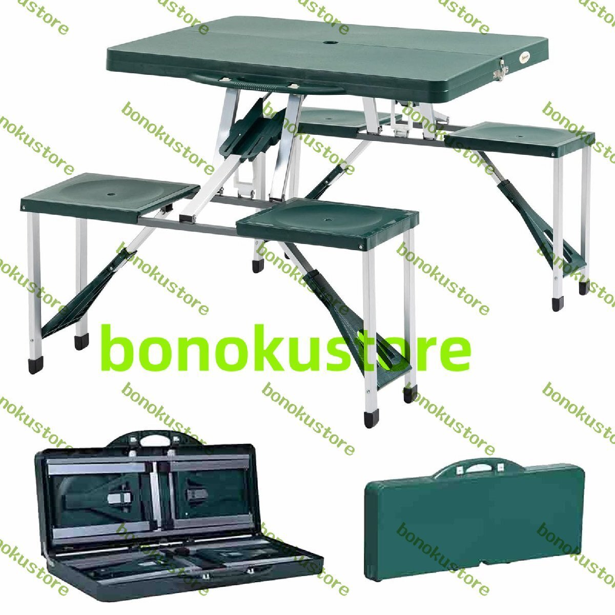 キャンプテーブルセット 折りたたみ 4人掛け アウトドア テーブル・チェア一体型 屋外 テーブルと椅子セット ピクニックテーブル 傘穴付き 軽量 ポータブル 組立簡単 持ち運び便利 BBQ ガーデン 屋外 キャンプ用品 グリーン