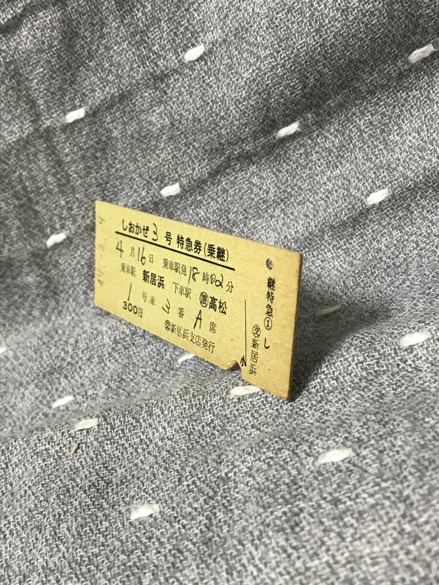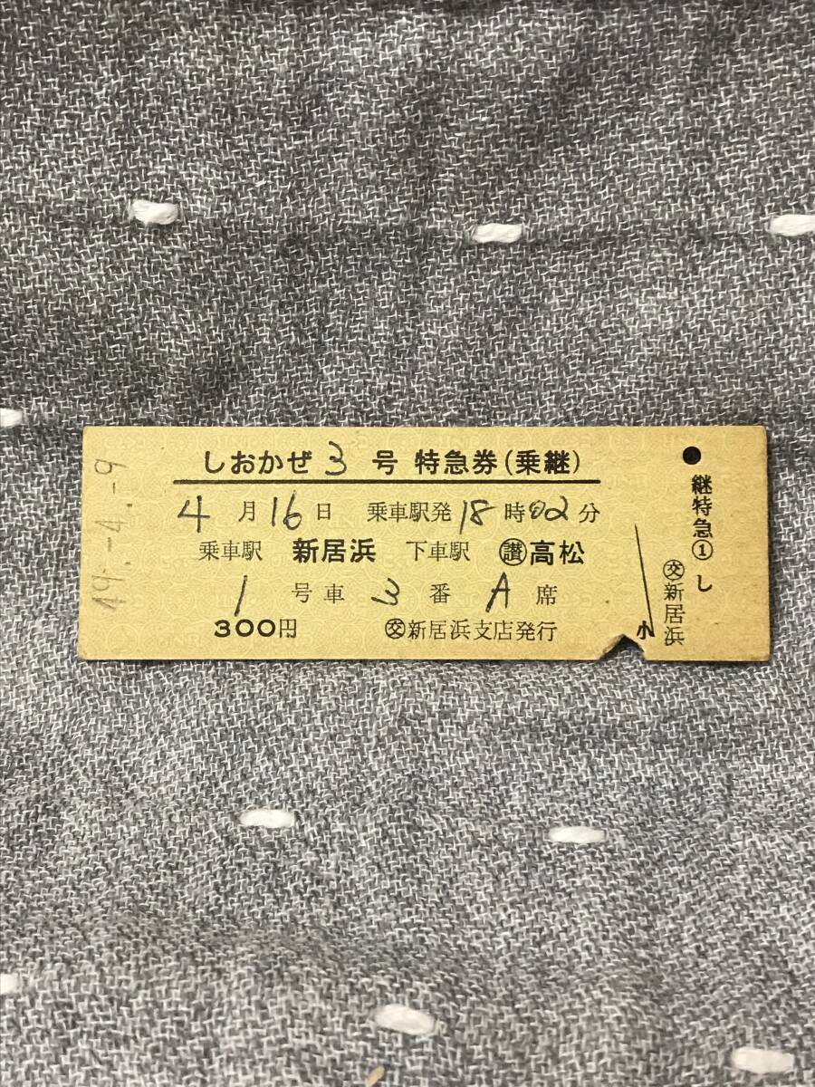 国鉄時代 特急 「しおかぜ 3号」 特急券 (乗継) 乗車日 昭和49年(1974年)4月16日 新居浜駅~高松駅間 当時価額300円