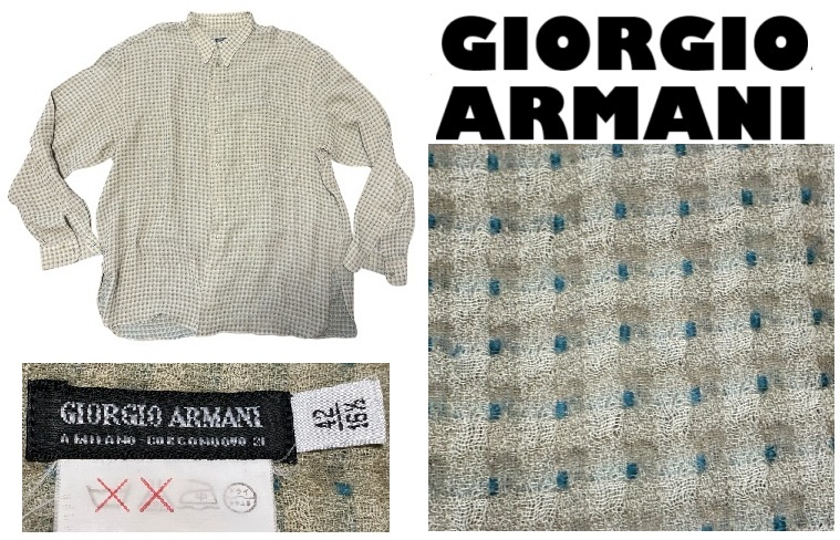 新品同然イタリア製ジョルジオアルマーニGiorgioArmani★長袖シャツ★レーヨン★総柄★ミント★42