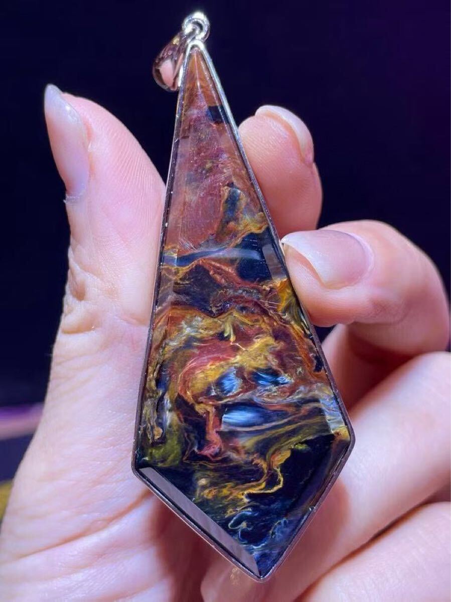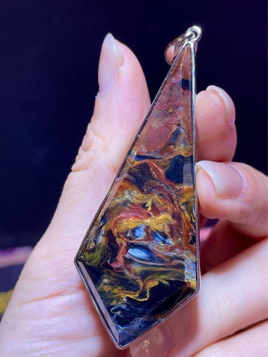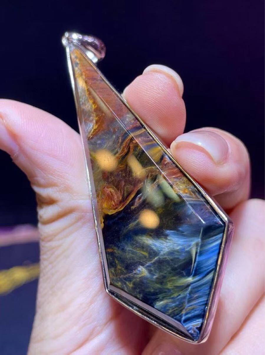 ブルーピーターサイトとは地殻変動やマグマ活動等によってホークスアイが崩れ溶け出した所に水晶の石英質が流れ込み再結晶化されたものを言います。産地はナミビアのみで、超レアな天然石です。