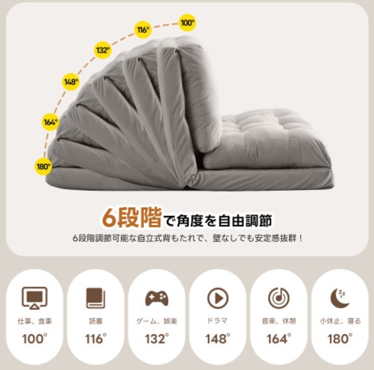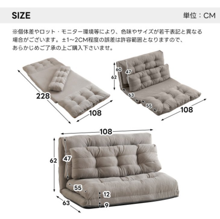 ソファーベッド ソファベッド ローソファー 2人掛け マルチに使える3WAY 幅108cm 6段階リクライニング クッション付き 座椅子 1人掛け ソフ