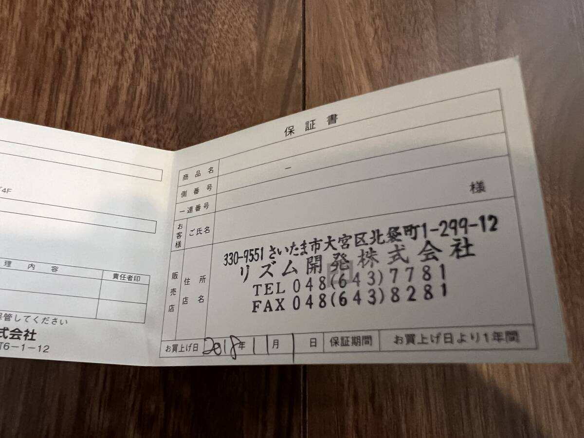 保証書には2018年11月1日の購入記録の販売店記載が記載があります。