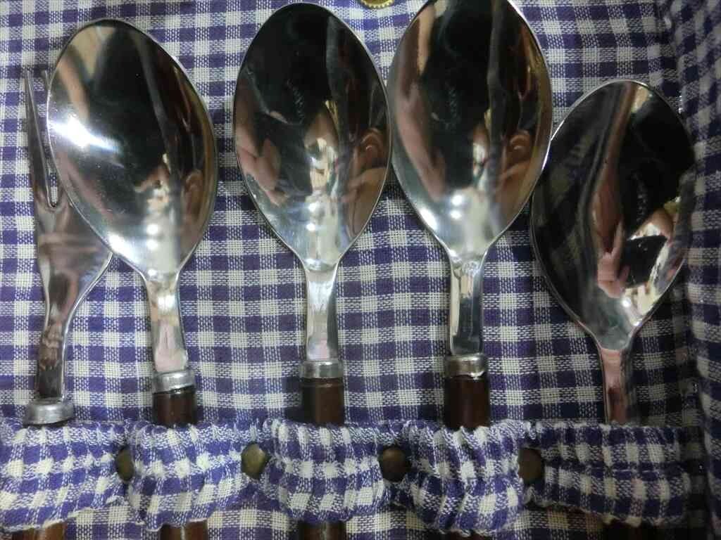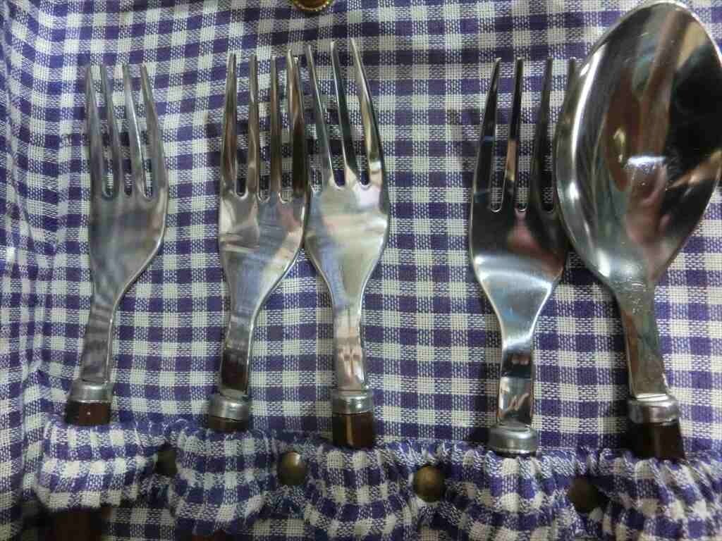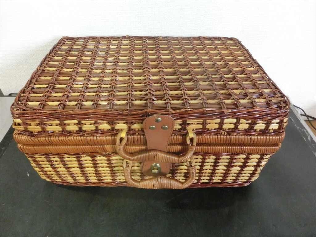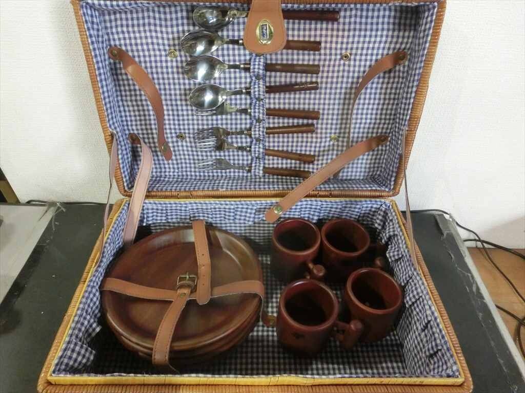T【Z8-31】【100サイズ】バスケットボックス 食器セット お皿・コップ・フォーク・スプーン 各4点/カトラリー/※傷有り