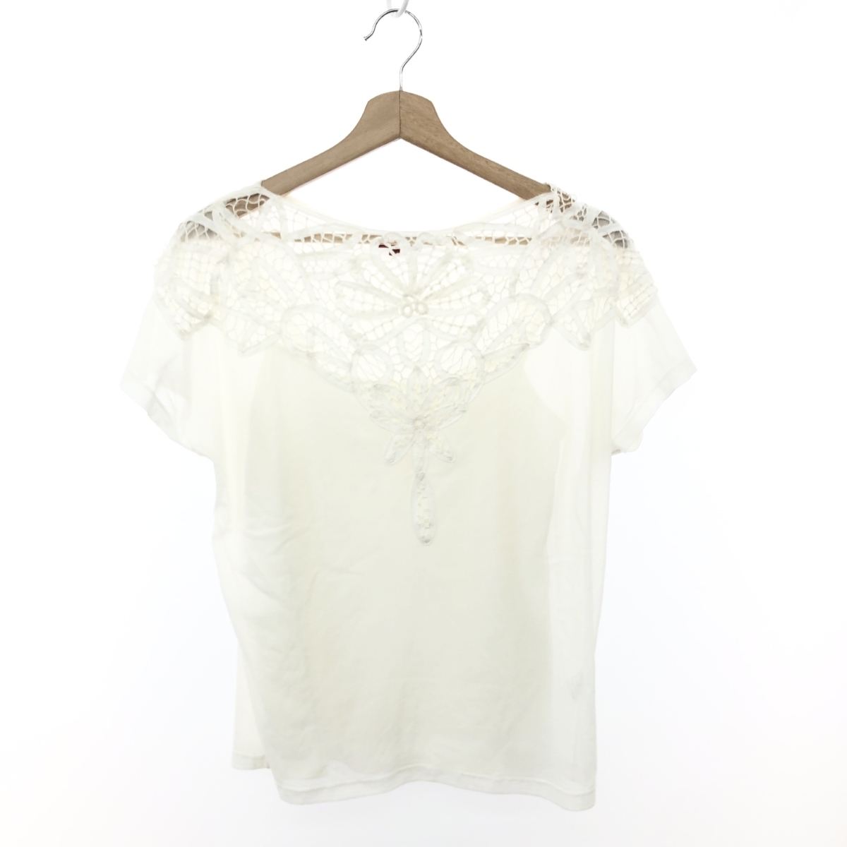 半袖ブラウス レースデザイン ※素材は画像の素材タグをご確認ください。画像にない場合は素材タグが無く素材不明となります。 |
