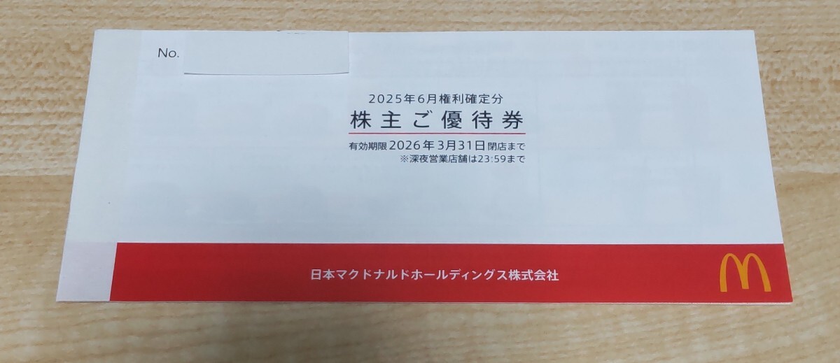日本マクドナルド株主優待券 1冊(6シート)です。