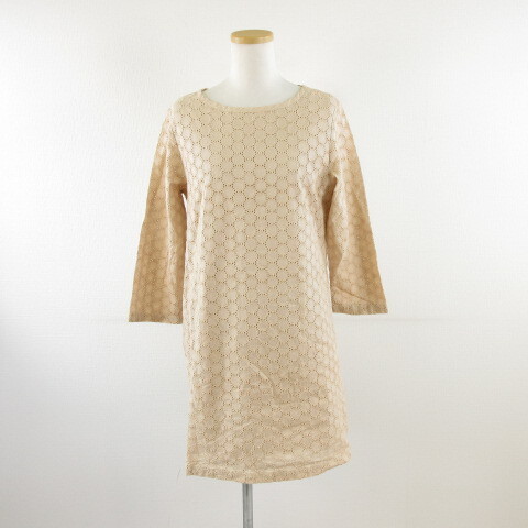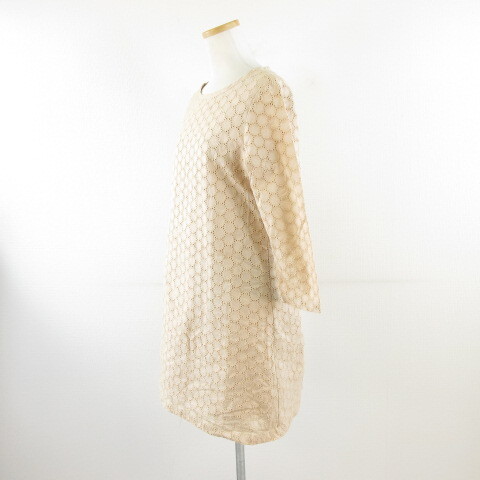 ジュンコシマダパート2 JUNKO SHIMADA part2 大きいサイズ ミニワンピース 七分袖 総柄 ベージュ 15 *A85 レディース
