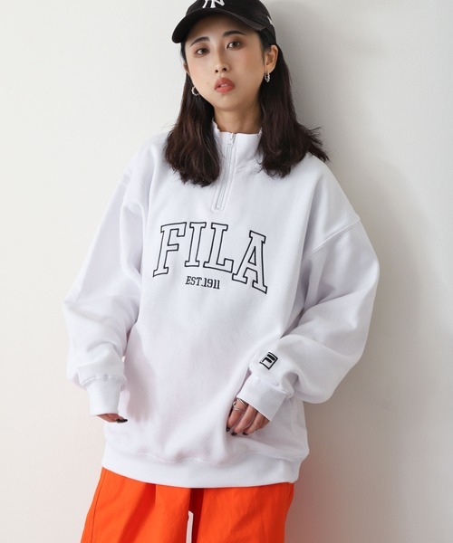 参考商品名:【別注】 【FILA】 韓国風 ロゴ 刺繍 ハーフジップ 裏起毛 スウェット トレーナー