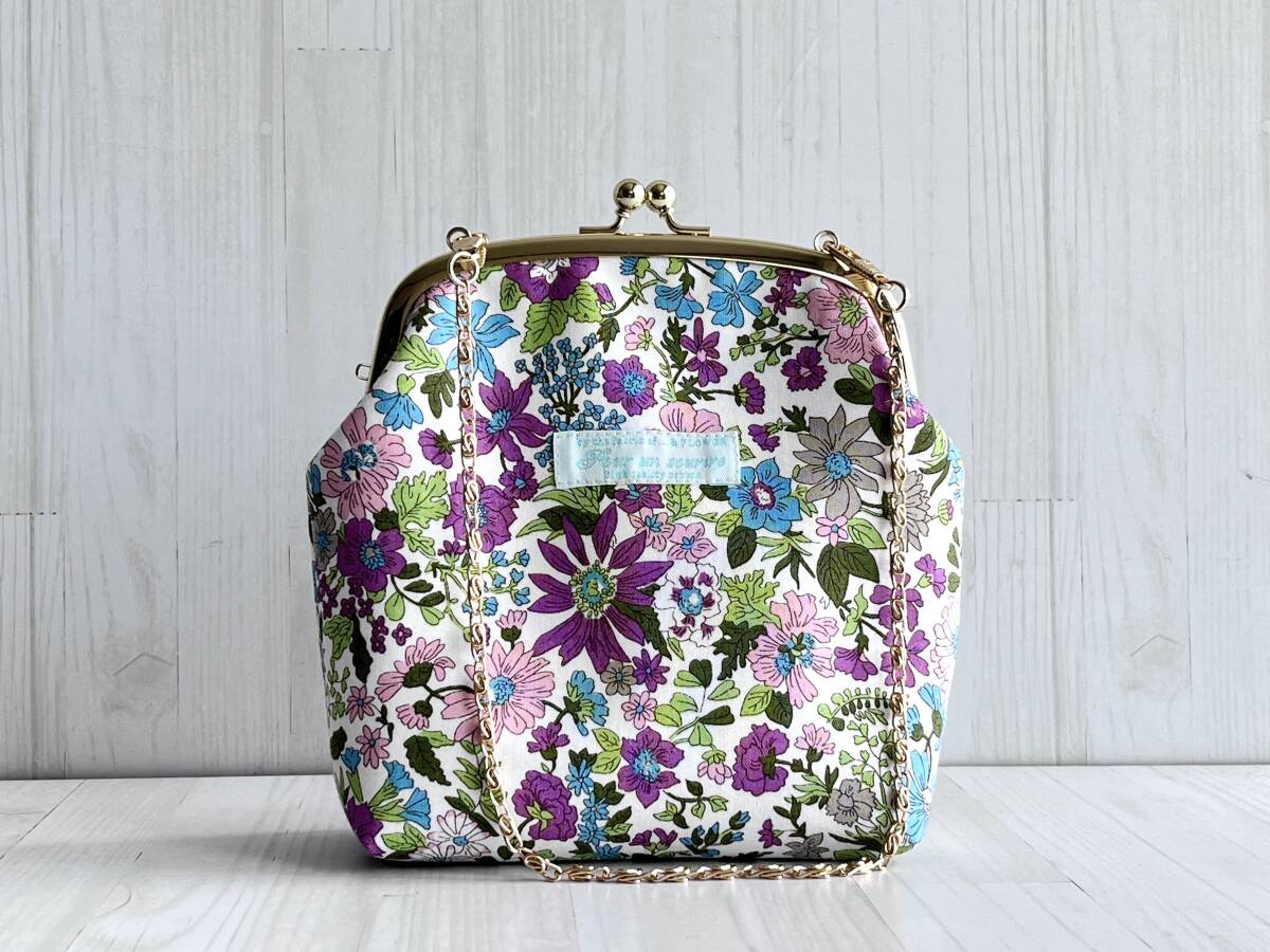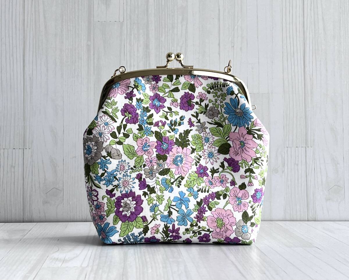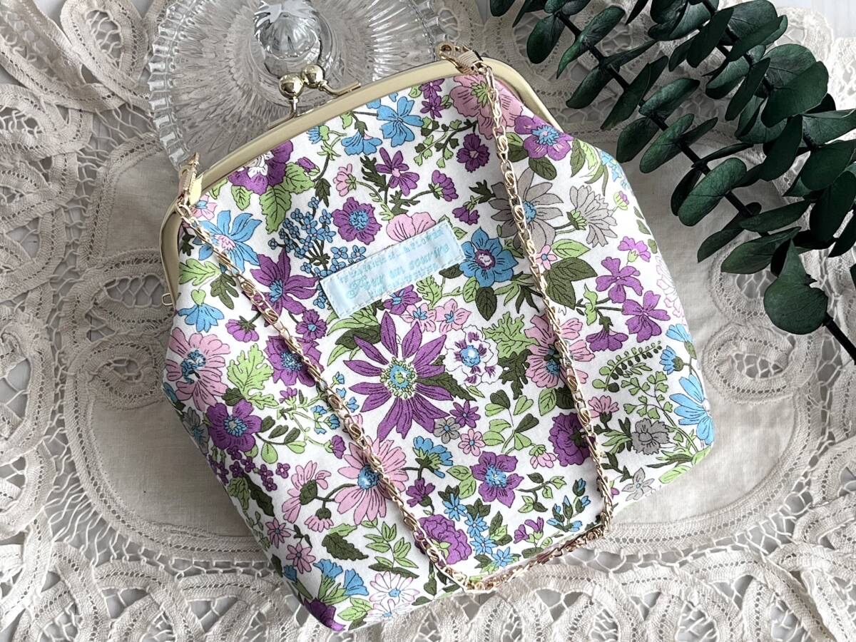 ハンドメイド+リバティ+Liberty+エミリー+秋色+パープル+2way +がま口バッグ+ショルダーバッグ+ボックスバッグ+コスメ