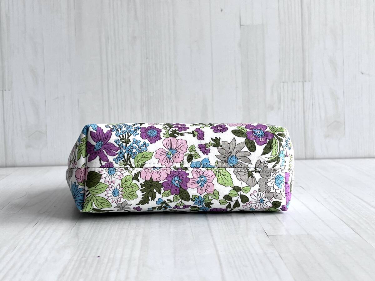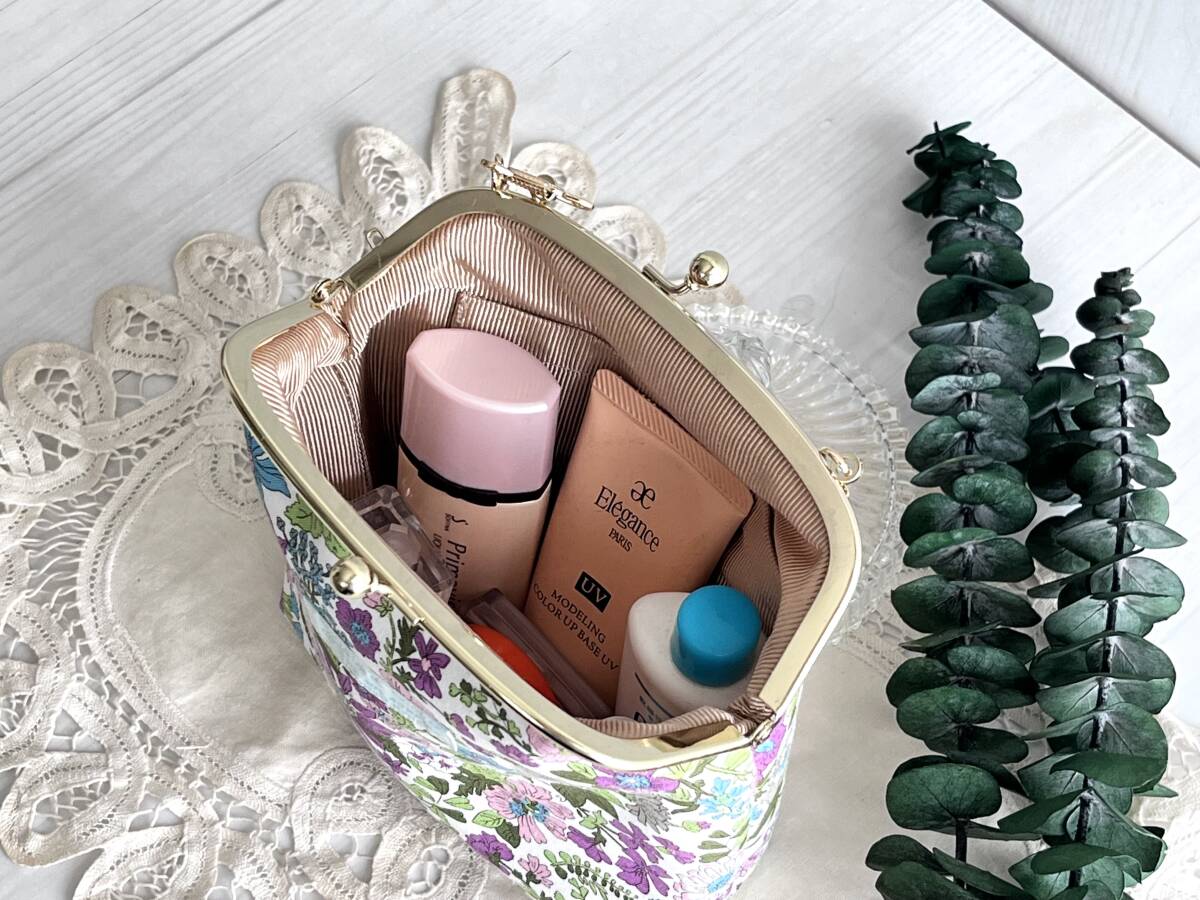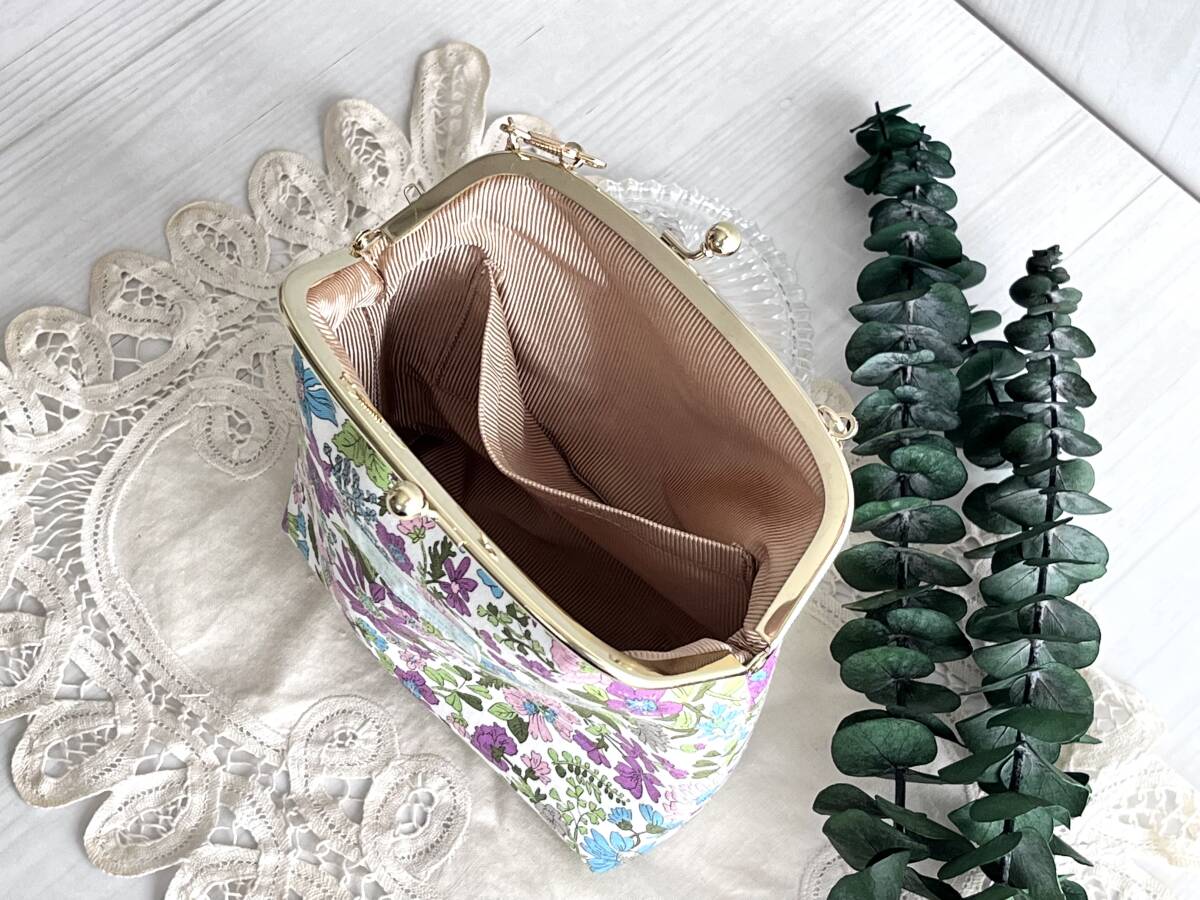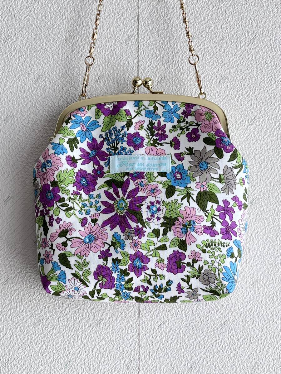 ハンドメイド+リバティ+Liberty+エミリー+秋色+パープル+2way +がま口バッグ+ショルダーバッグ+ボックスバッグ+コスメ