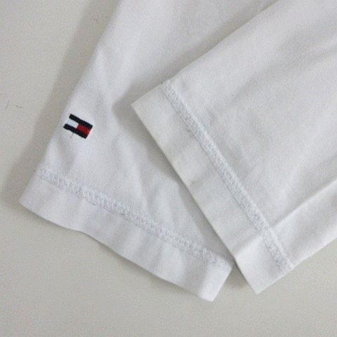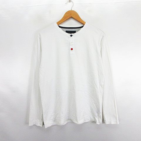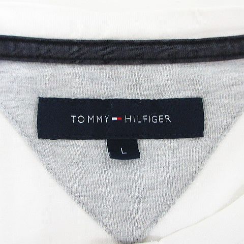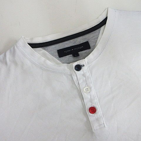 トミーヒルフィガー TOMMY HILFIGER Tシャツ カットソー 長袖 ヘンリーネック ロゴ コットン L ホワイト ※EKM メンズ