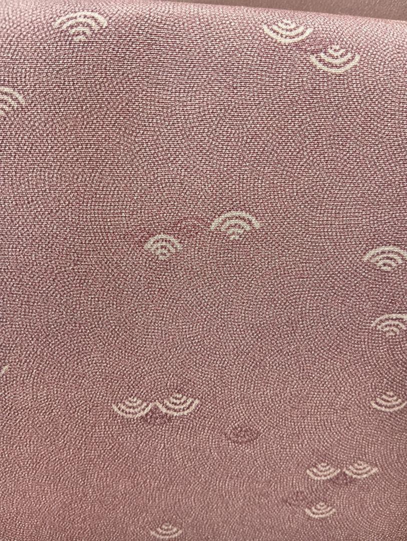 細かい粒で描かれた扇形の模様を斜めに重ね、鮫肌のように 染め抜いた文様です。