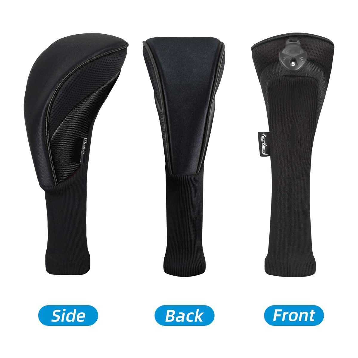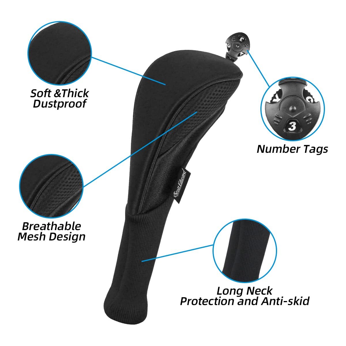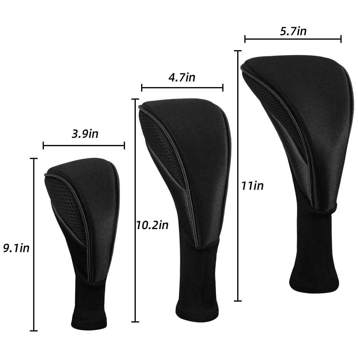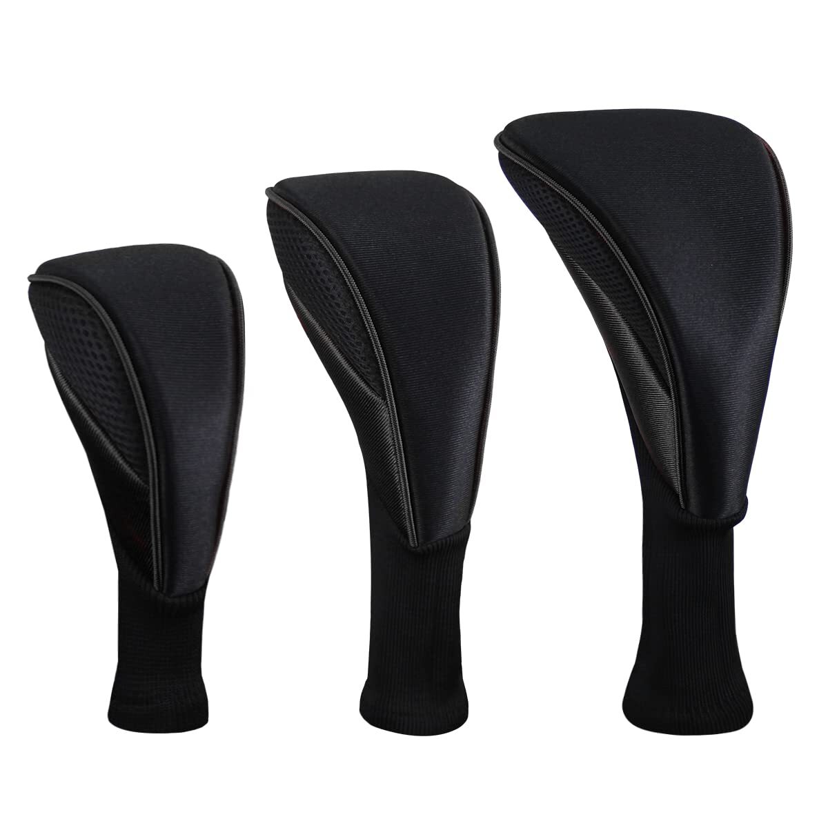 ダークカラーのゴルフヘッドカバー3点セット、ドライバー(460CC)、フェアウェイウッド、ハイブリッド(ユーティリティ)。回転3つの番号タグ付き(#1、#2、#3、#4、#5、#6、#7、#8、#X、#UT)、見栄えがよく、個性的。しわ防止、柔らかいアクリル糸の二重編成。 洗濯可能で新しい外観を保ちます。ユニ。