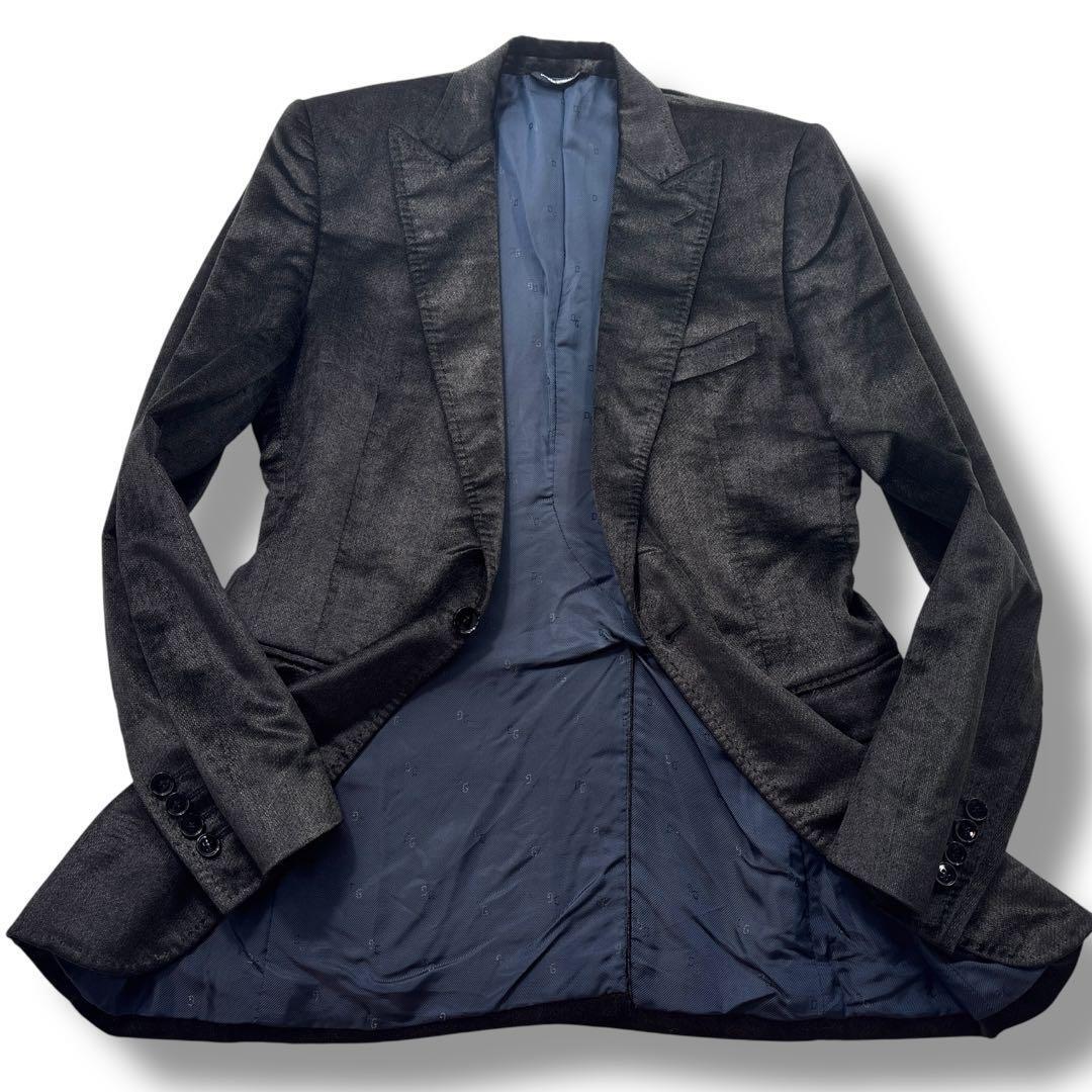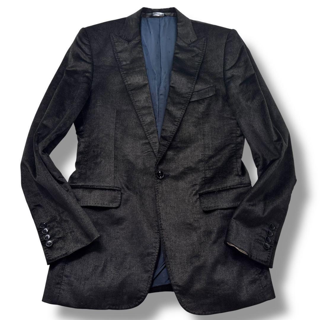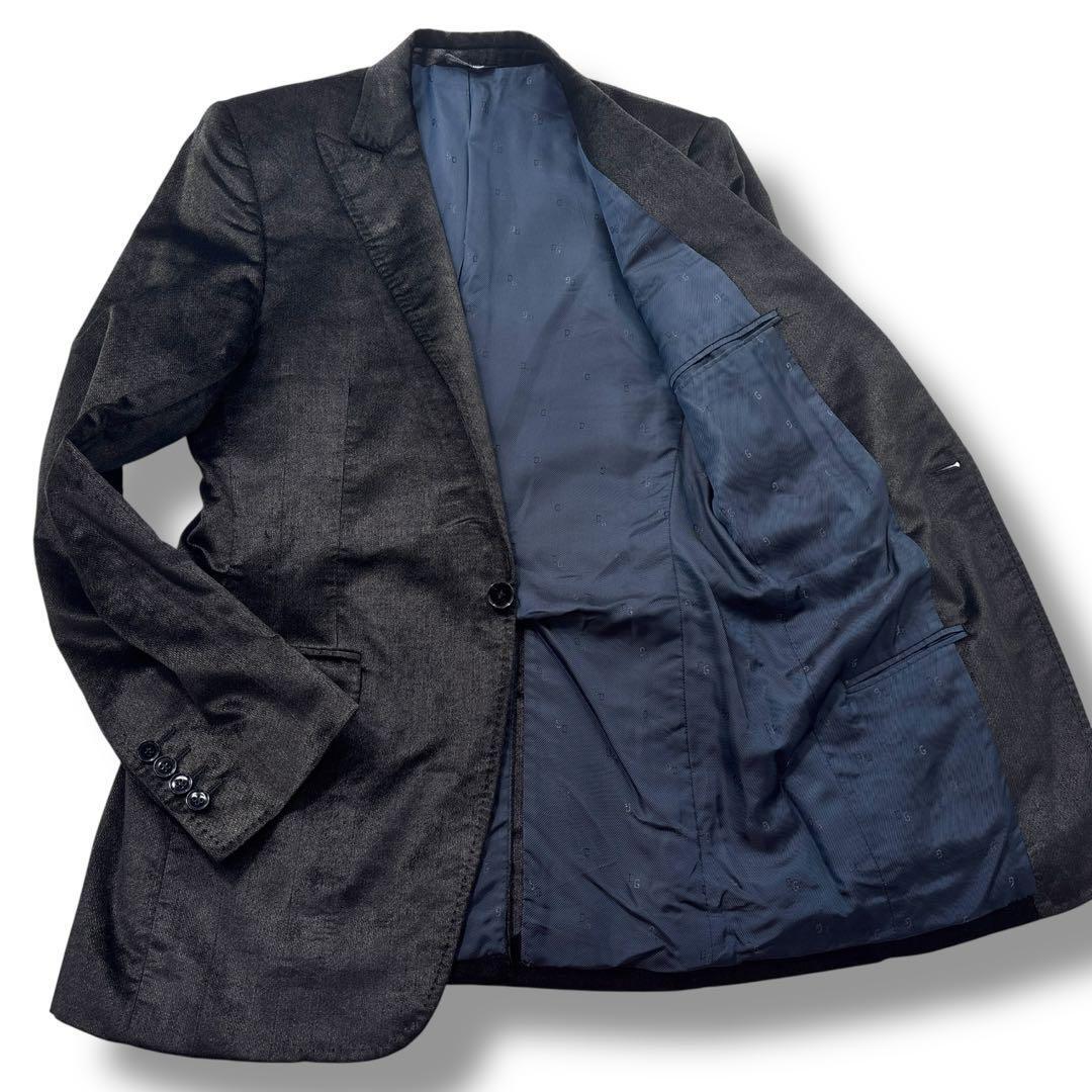 【極美品】DOLCE&GABBANA ドルガバ ドルチェアンドガッパーナ D&G テーラードジャケット ベロア生地 コットン 光沢 裏地総ロゴ 46 M