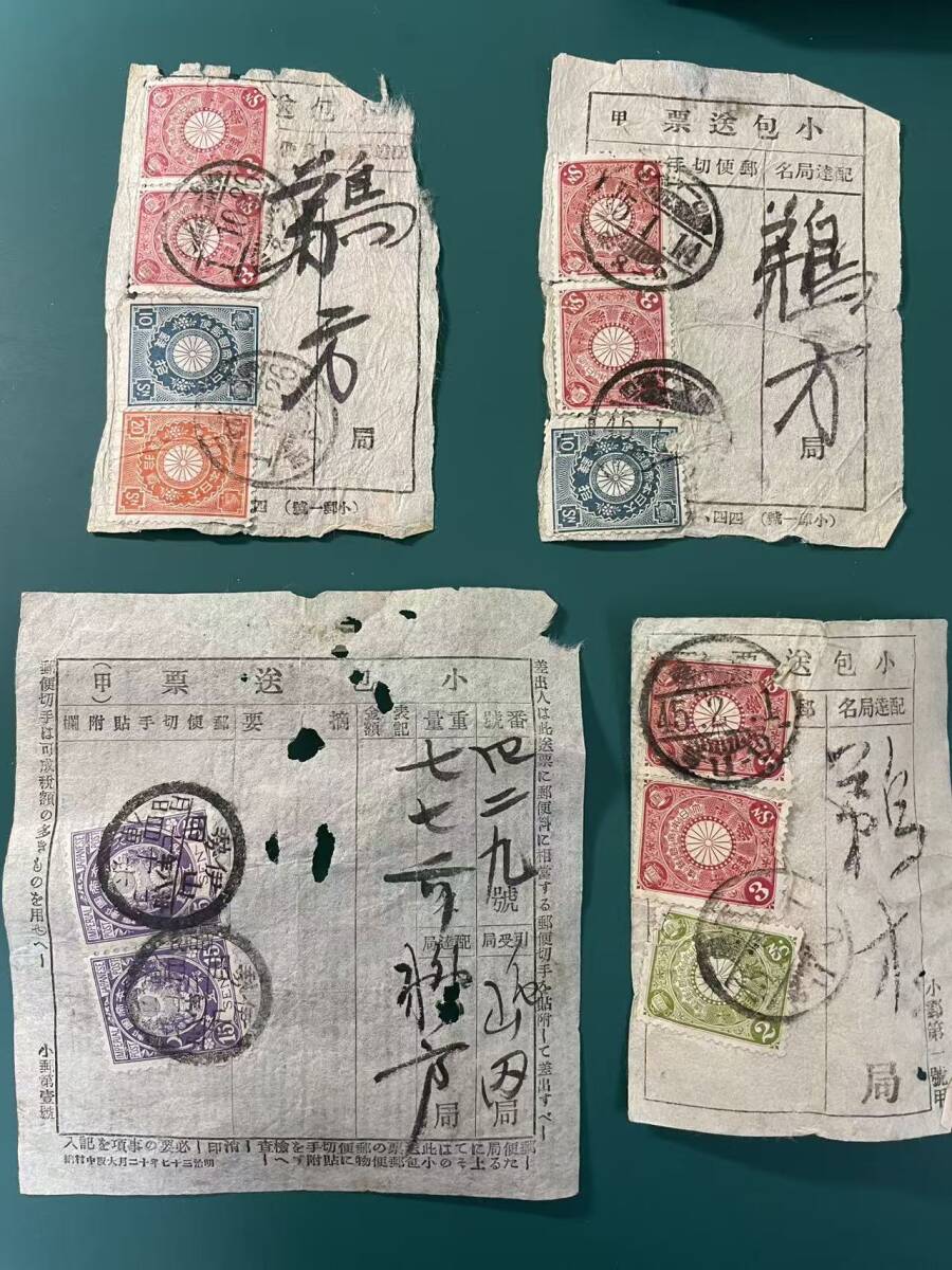 菊切手貼 小包送票 使用済み4件 S390 | |