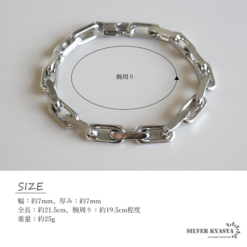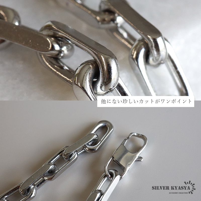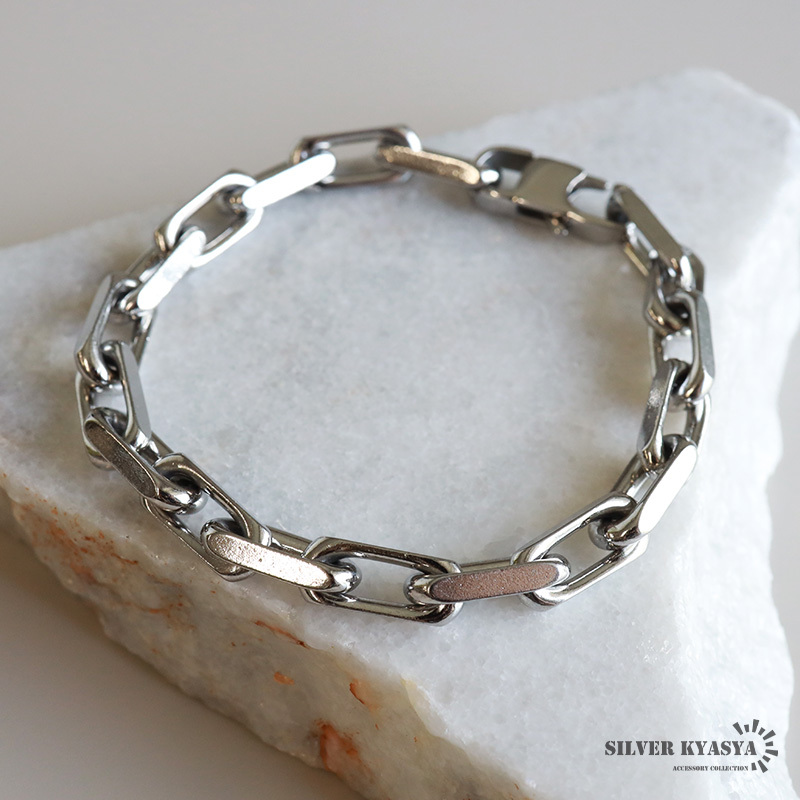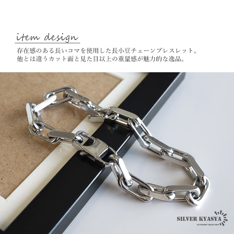 長小豆チェーンブレスレット コマ長ブレスレット ステンレス シルバー 他とは違うカット面 メンズ 男性 金属アレルギー対応
