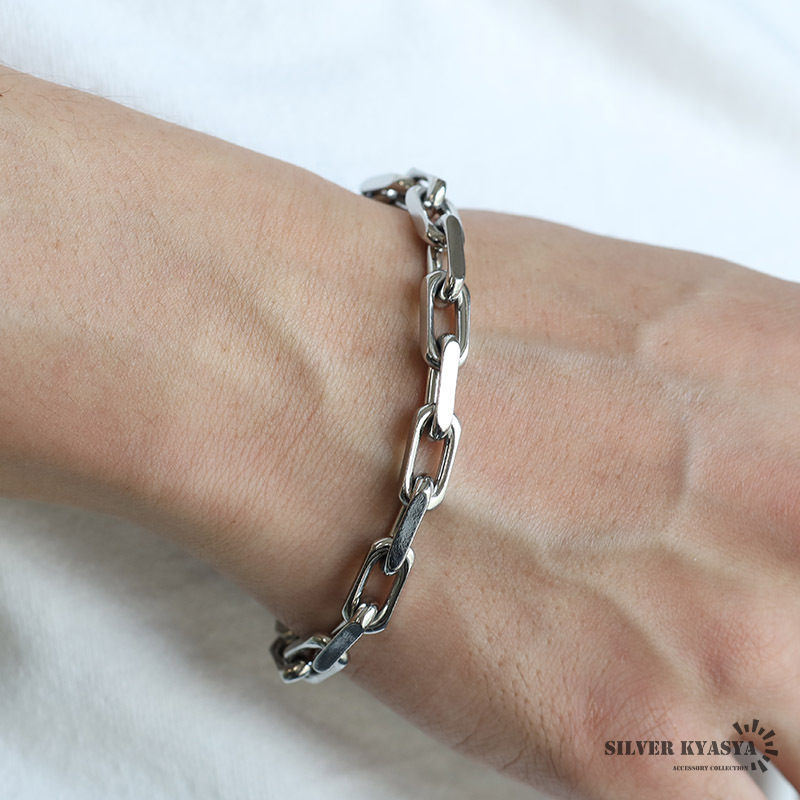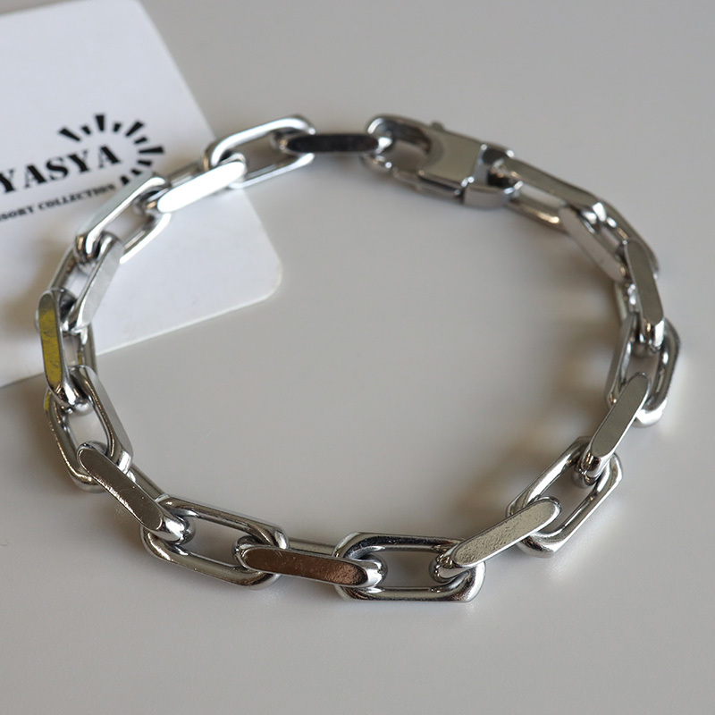 存在感のある長いコマを使用した長小豆チェーンブレスレット。他とは違うカット面と見た目以上の重量感が魅力的な逸品。
