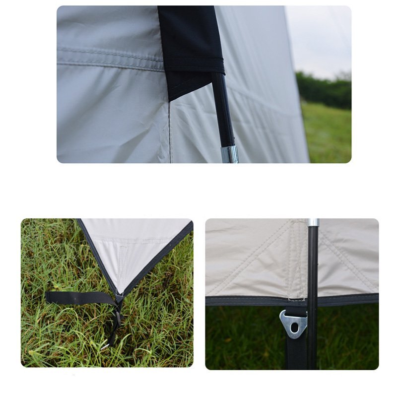 【優れた防水性とUVカット性能】210Dシルバーコーティングオックスフォード生地を採用し、PU3000mmの防水性能を実現。突然の雨でも安心して使用でき、水漏れの心配がありません。また、生地表面のシルバーコーティングにより、紫外線を効果的に遮断。強い日差しからもしっかり守るので、晴れの日も快適にお過ごしいただけます。アウトドア初心者からベテランキャンパーまで、どんな天候でも快適してご利用いただけるテントです。