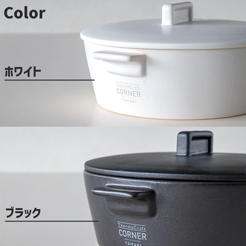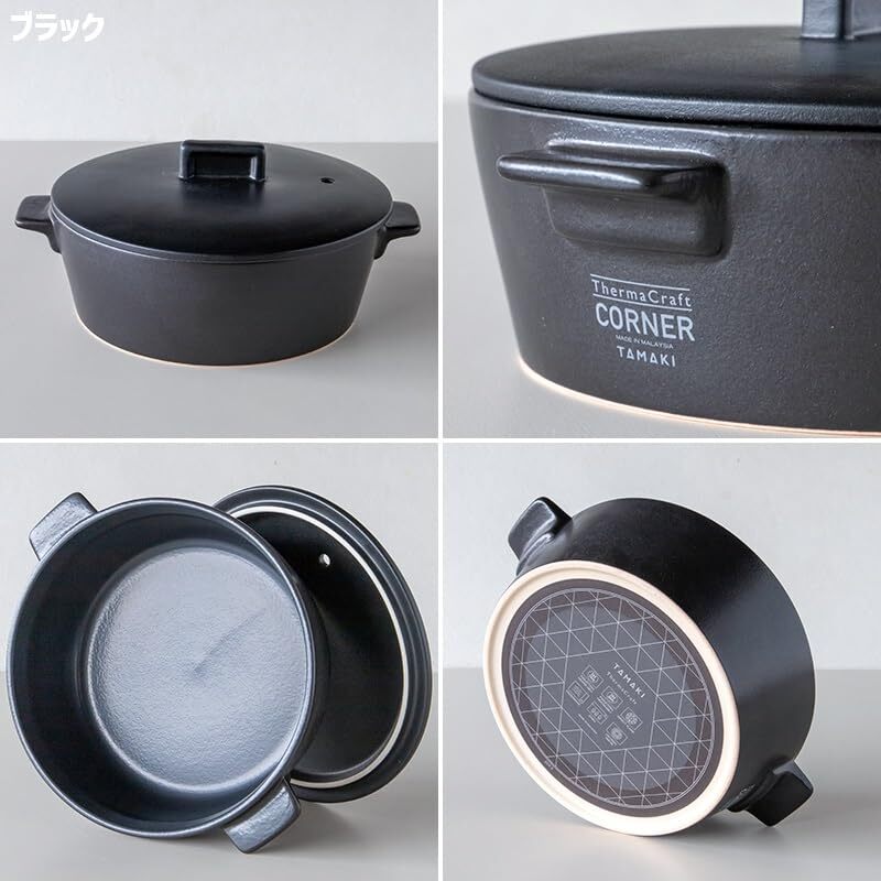 商品名 | TAMAKI 土鍋 コーナー IHクレイポット 1-2人用 ブラック 直径23.2×奥行19×高さ10.4cm IH・直火・電子レンジ・オーブン対応 | ||||