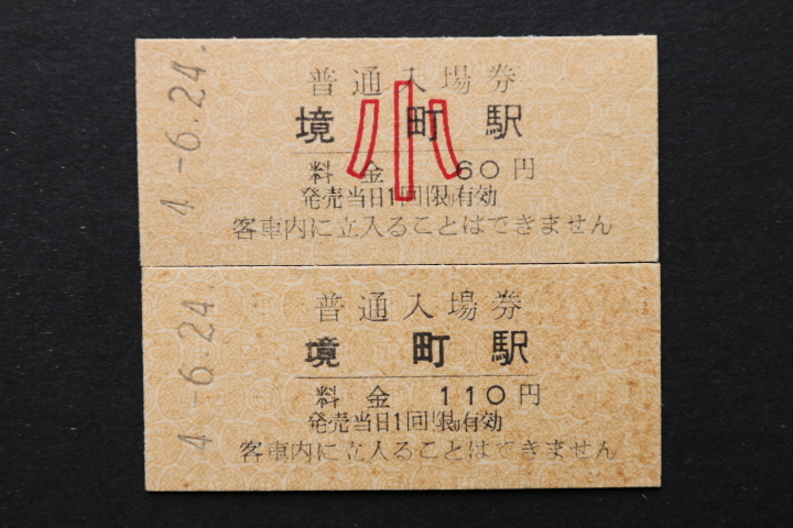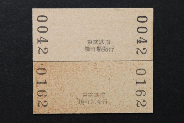 東武鉄道地紋入り入場券 境町駅 大人券小児券2枚セット 110