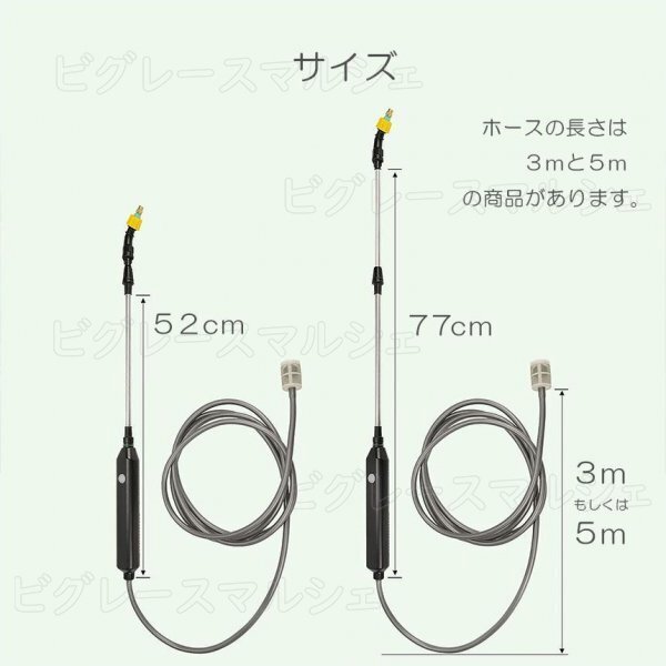 ■3mまたは5mの吸水ホースが付属しており、容器に関係なく水源や容器から直接水を汲むことができます。植木鉢やその他の高さのある物にも簡単にスプレーできます。