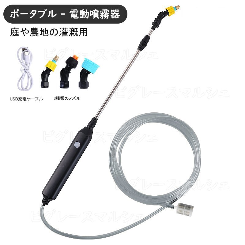 噴霧器 電動 電動噴霧器 伸縮 充電式 霧吹き ポータブル Type-C充電 3種類のノズル 吸水ホース 家庭の掃除 園芸水やりなど 2m/3m/5m 1095