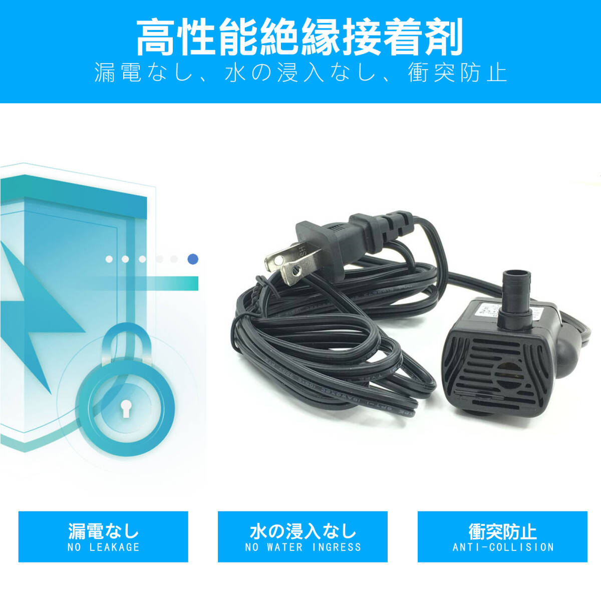 使い方 | 指定した高度まで水を注ぎ、ポンプを排水パイプに接続し、ポンプを電源に接続しラベルに示した識別通りに給電すれば、ポンプが正常に稼働する |