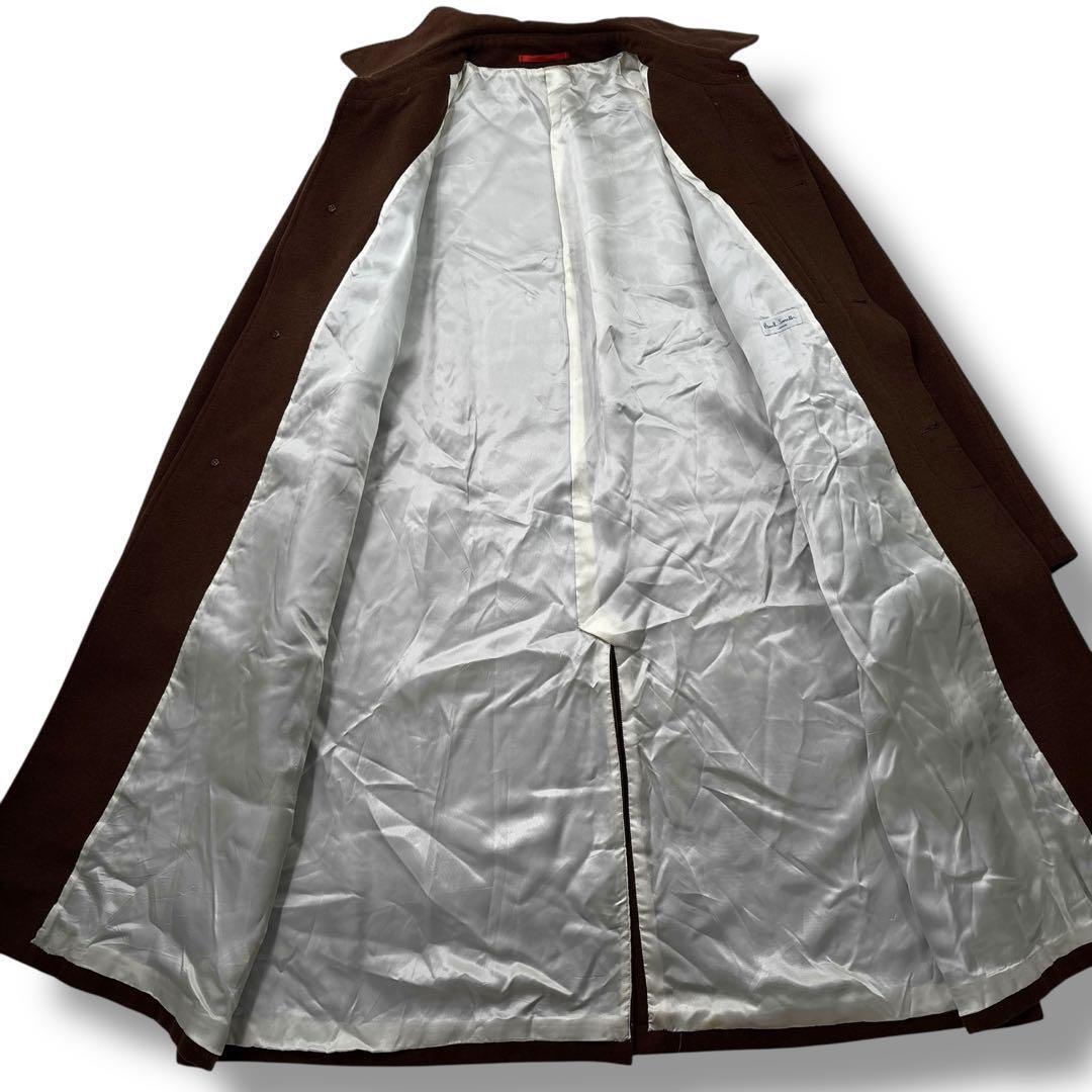 【高級】Paul Smith ポールスミス カシミヤ ウール ロングコート ステンカラー 茶 ビジネス 通勤通学 メンズ