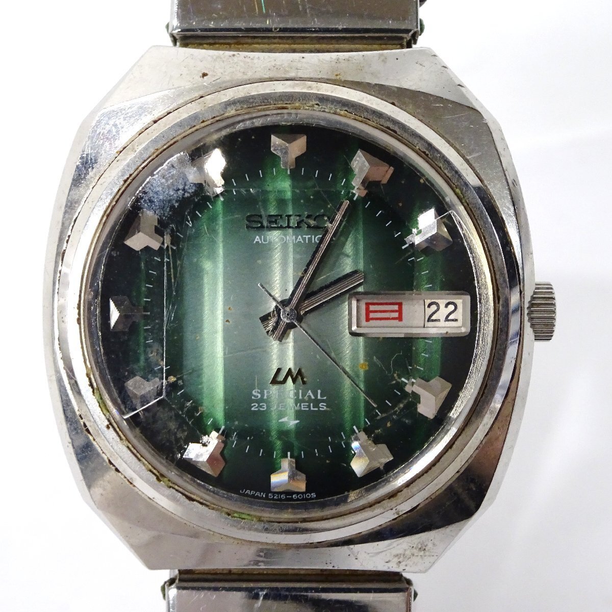 1円開始◆稼働◆ セイコー 5216-6000 LM グリーン 自動巻き ユニセックス 腕時計 AB81803