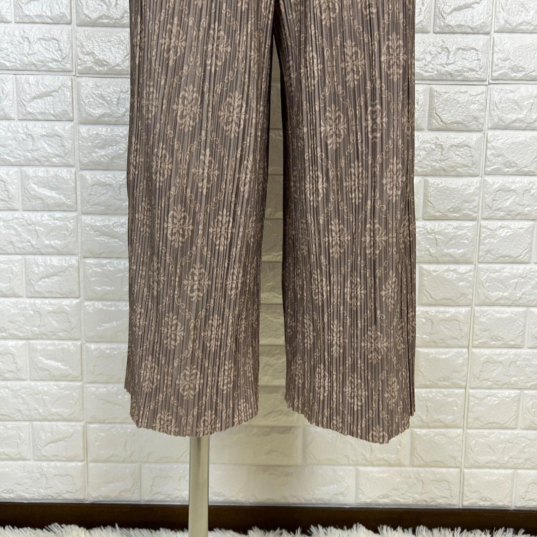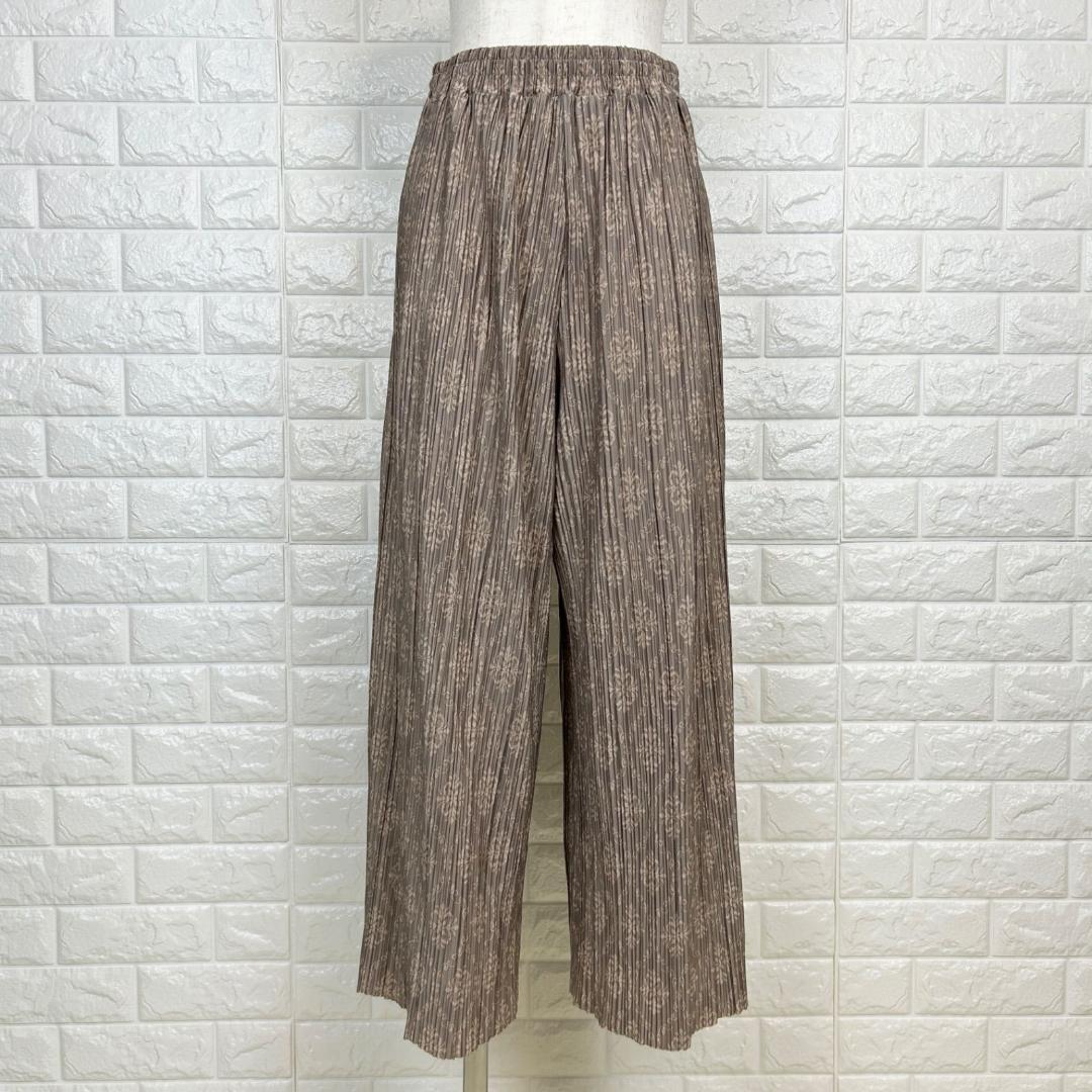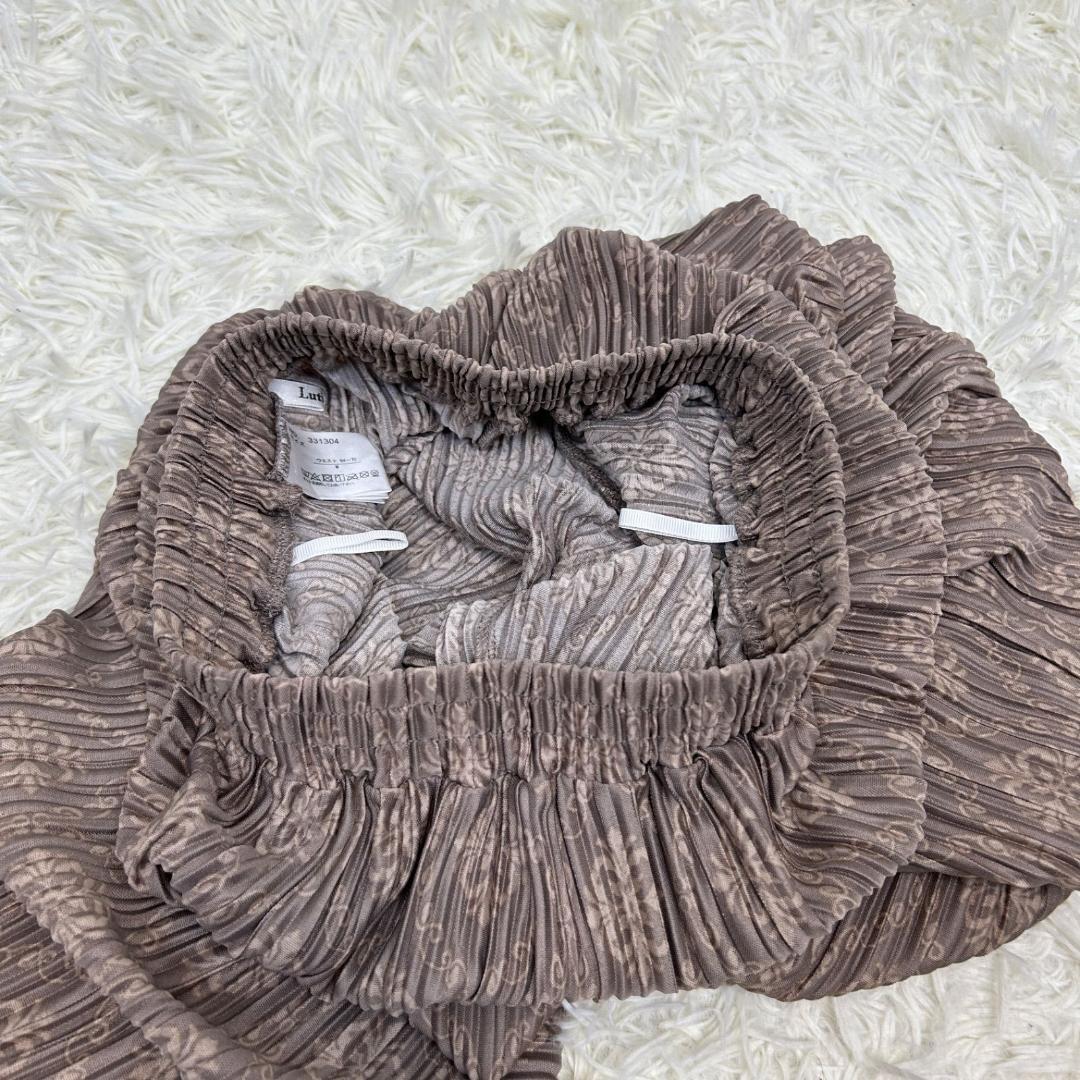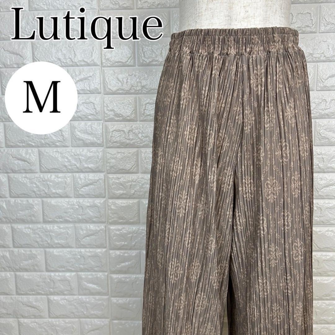 【AA1289】 Lutique ルティーク Mサイズ プリーツワイドパンツ 総柄 ブラウン ウエストゴム ゆったりシルエット リラックスパンツ