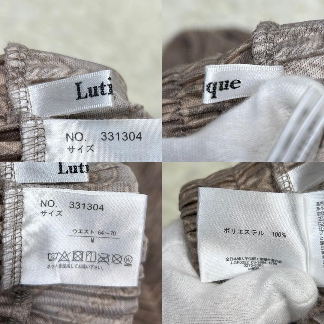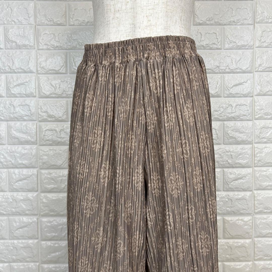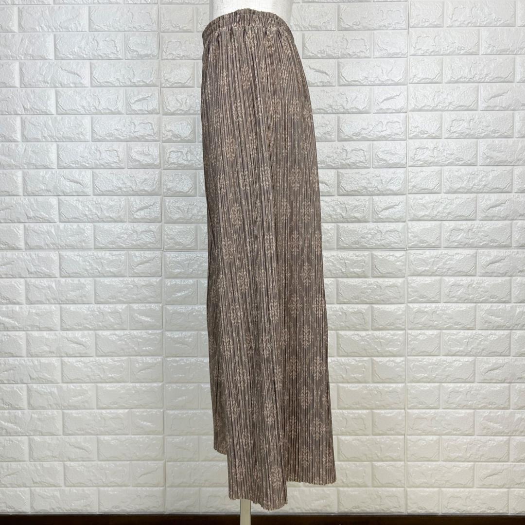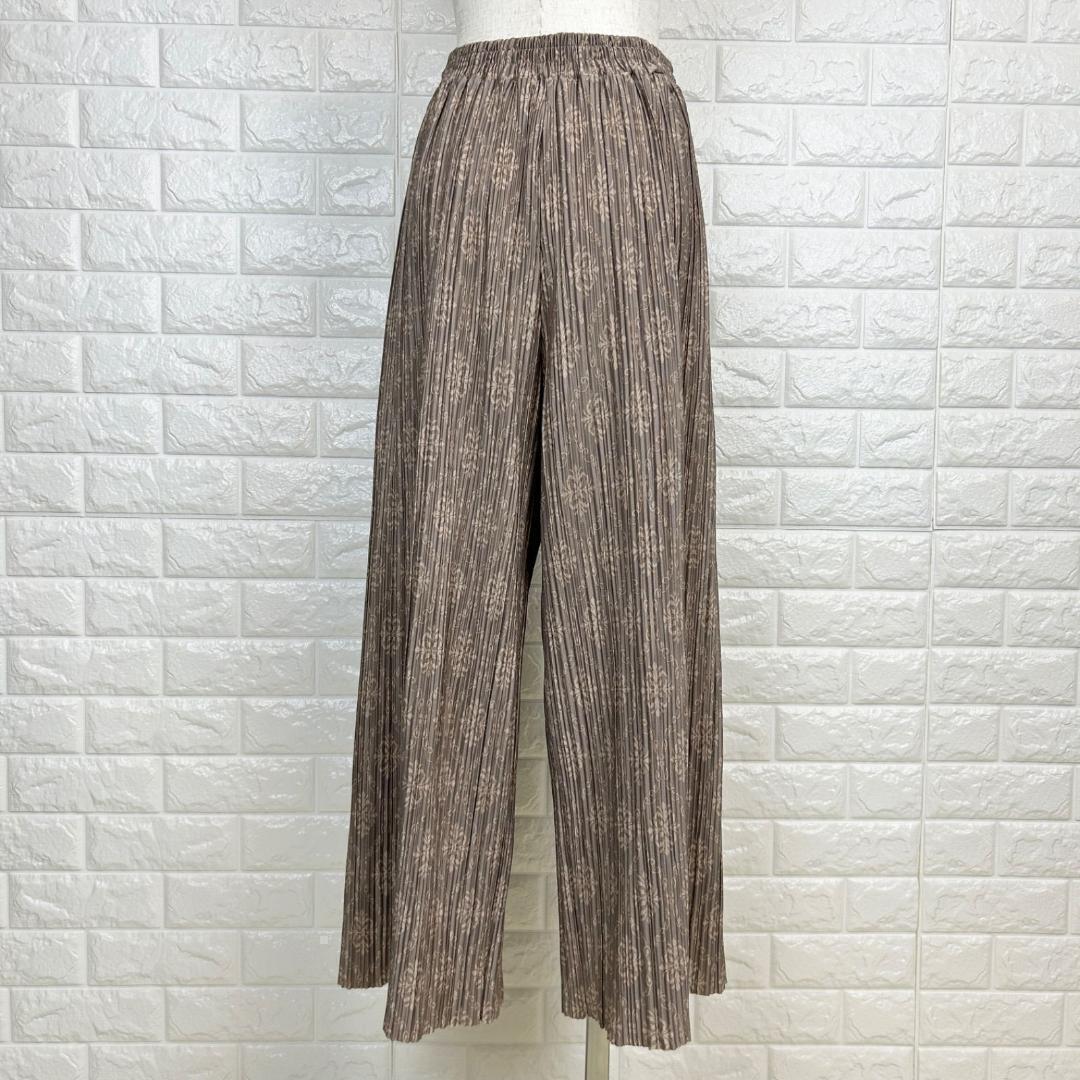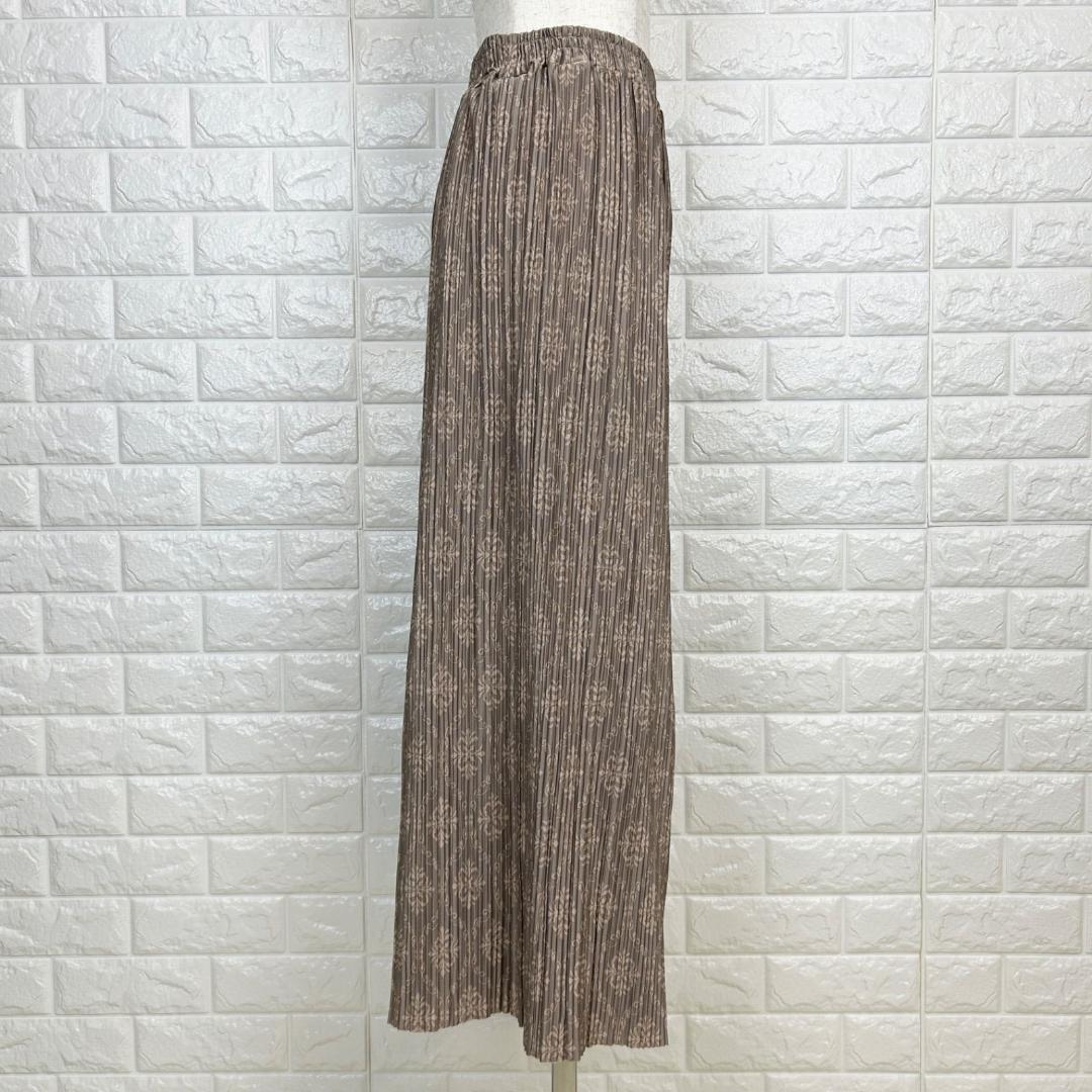【AA1289】 Lutique ルティーク Mサイズ プリーツワイドパンツ 総柄 ブラウン ウエストゴム ゆったりシルエット リラックスパンツ
