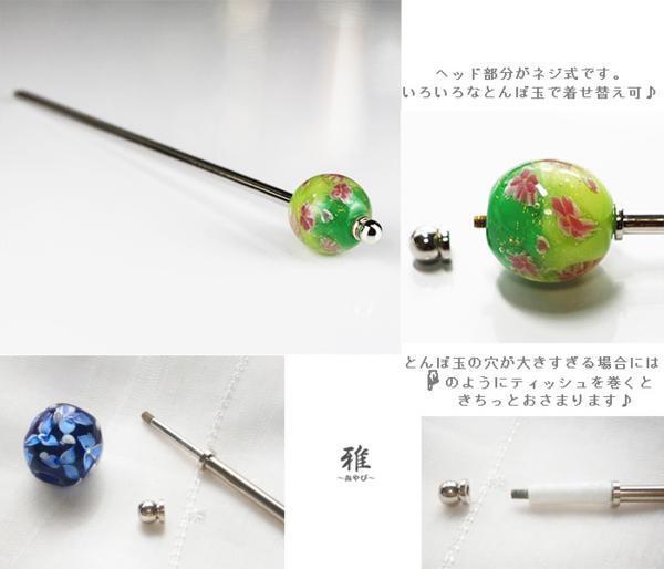 ・とんぼ玉かんざしはトップが緩んできたり硬くて外れない場合はゴム手袋をお使いいただくと容易に開け閉めができます。