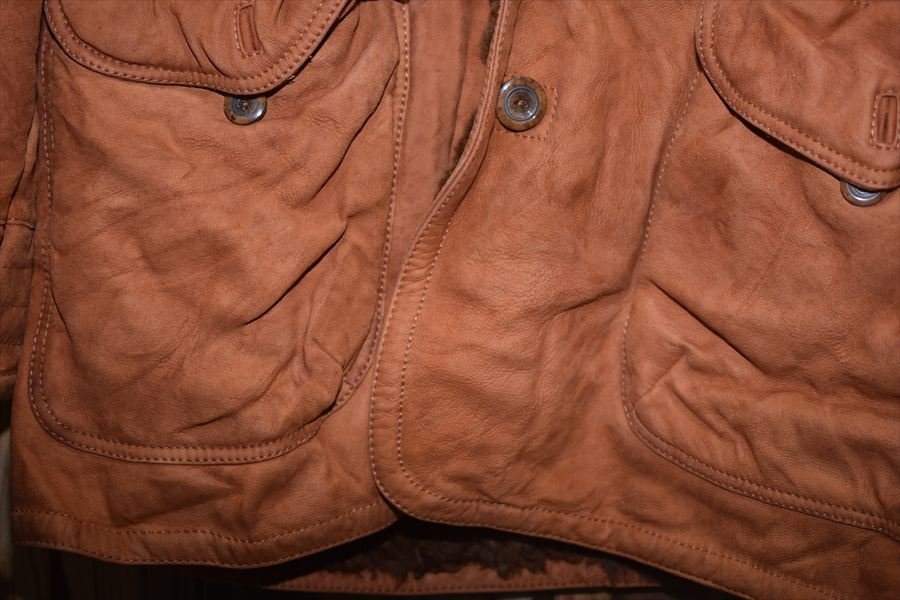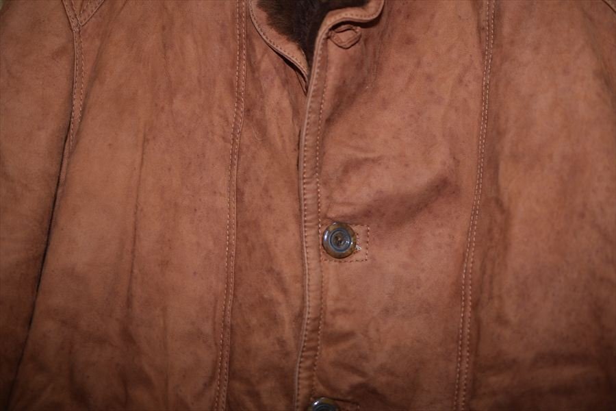 SHEARLING★イタリア直輸入★良質 シープスキンムートン レザージャケット コート XXXL (SP-030)  メンズ ユーロ古着