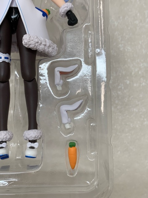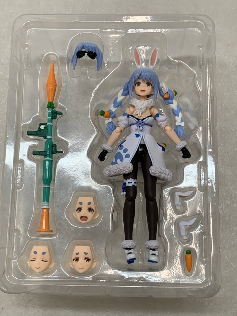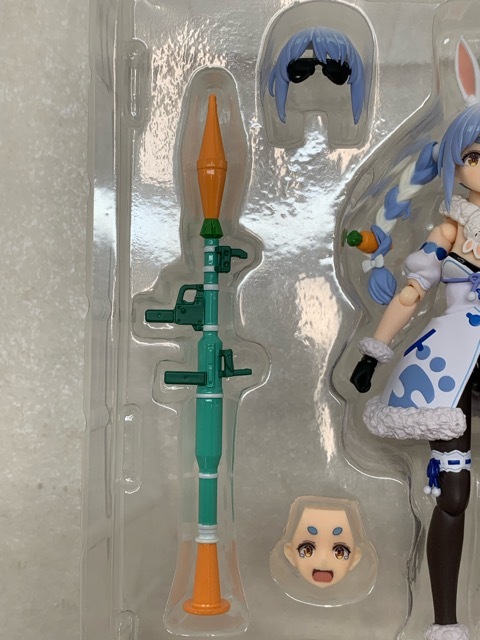 フィギュア本体、交換用顔パーツ×3(ドヤ顔・ぺこ虐顔・慌て顔)、交換用手首パーツ×8(左右各4)、ロケットランチャー、人参、野うさぎ、サングラス付き前髪、たれ耳、専用台座一式(台座本体・アーム(支柱)、アームジョイント)、予備ジョイント、説明書