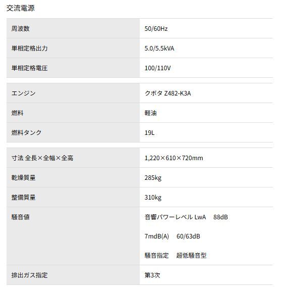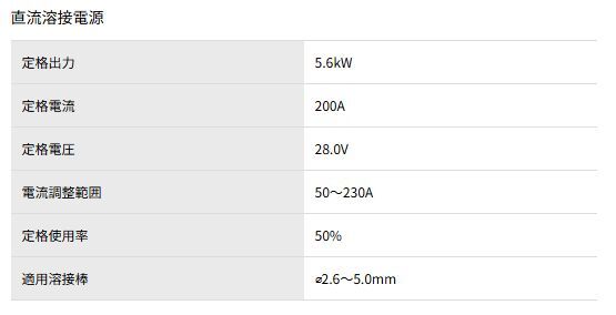 ●単相交流電源5.0/5.5kVA(*溶接中の同時使用はできません)