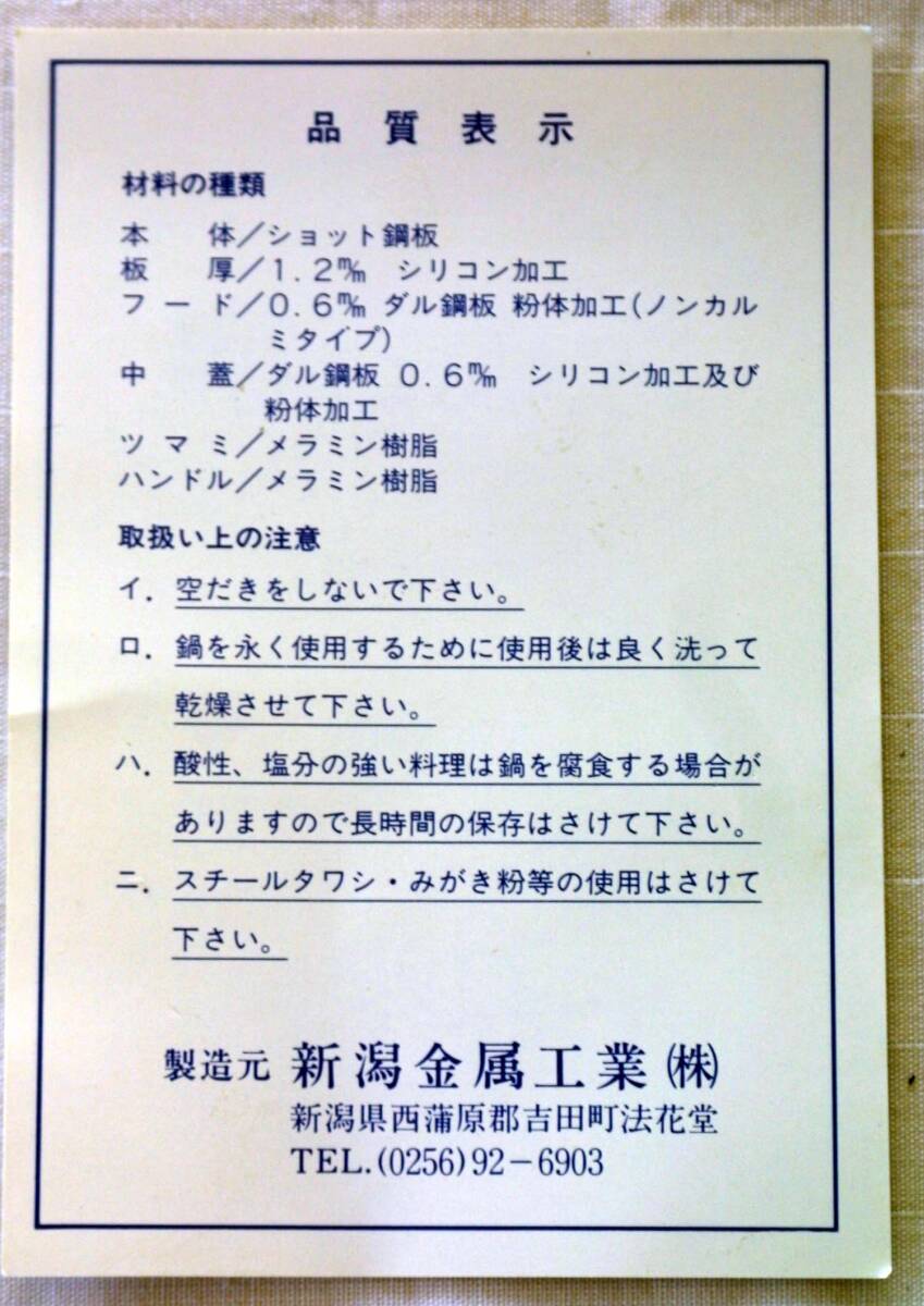 新潟金属工業㈱ 天ぷら鍋(深鍋) 直径22㎝ 深さ8㎝ 新品未使用品